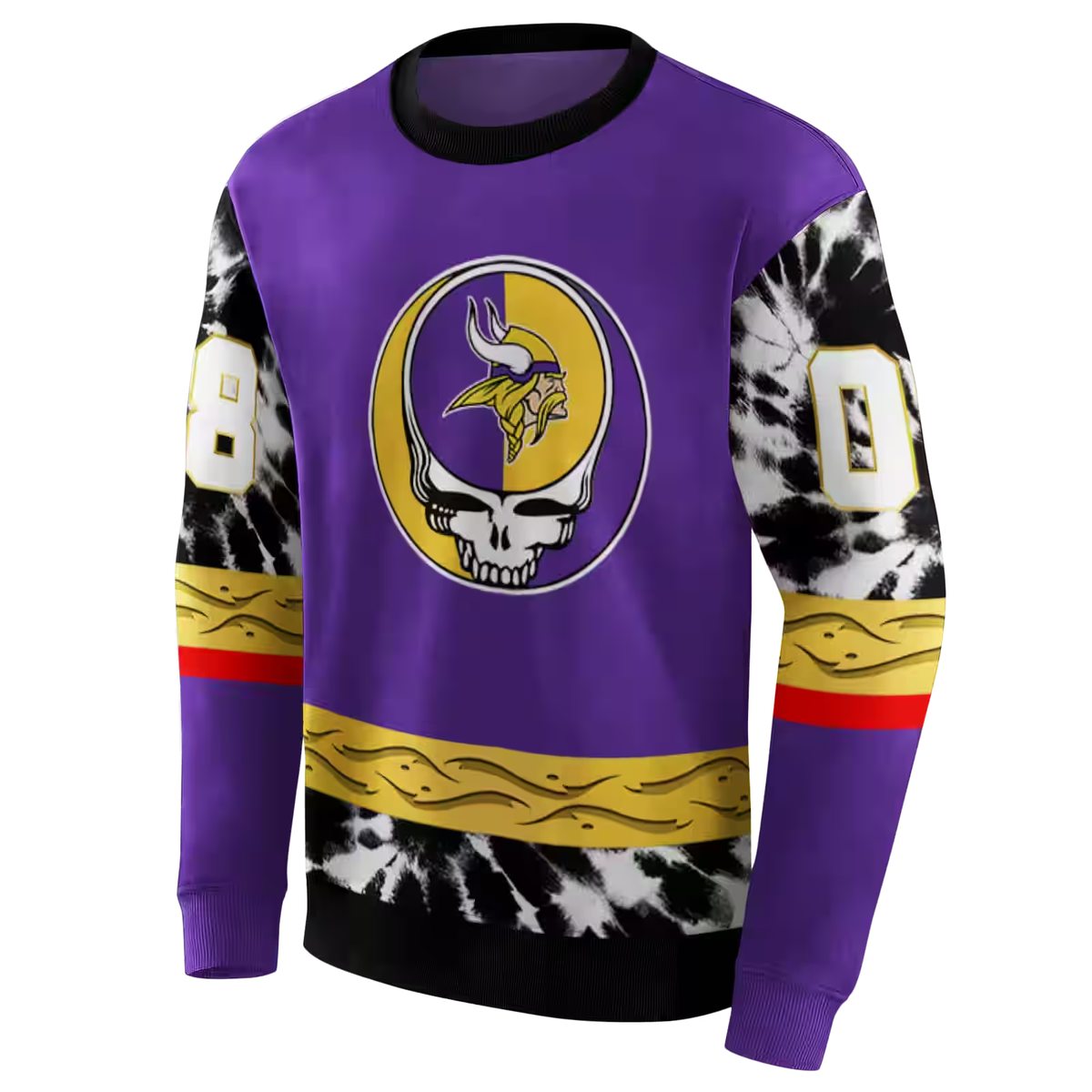 Embrace your unique style with our Personalized Minnesota Vikings Grateful Dead Vibes Purple AOP Sweatshirt. Perfect for fans who appreciate both football and music, this sweatshirt offers a vibrant way to showcase your passion. Ideal for casual outings, lounging at home, or hitting the gym, it combines comfort and flair for any occasion.