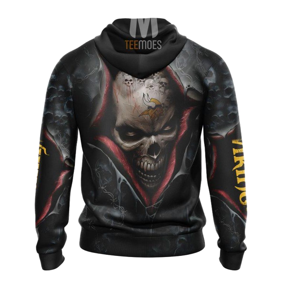 Embrace your spooky side with our Personalized Minnesota Vikings Halloween Horror Skull AOP Hoodie, perfect for fans who love to showcase their team spirit with a twist! This unique hoodie is designed for both men and women, making it an ideal choice for casual outings, game days, or festive gatherings during the chilly season. Stand out in style with its all-over print that combines team pride and Halloween vibes.