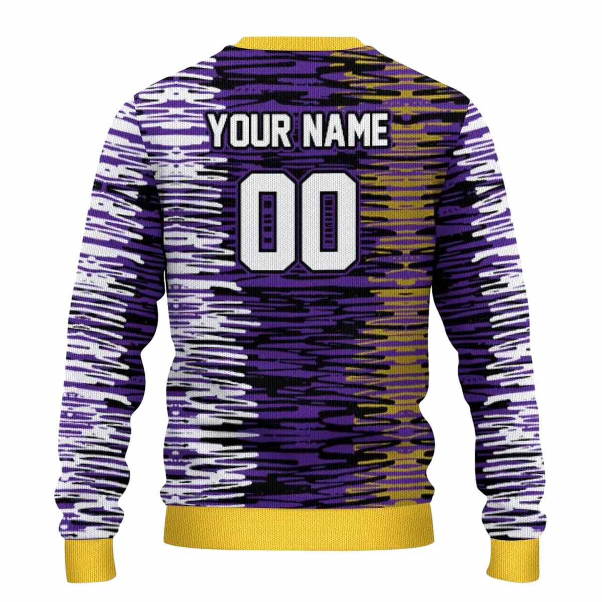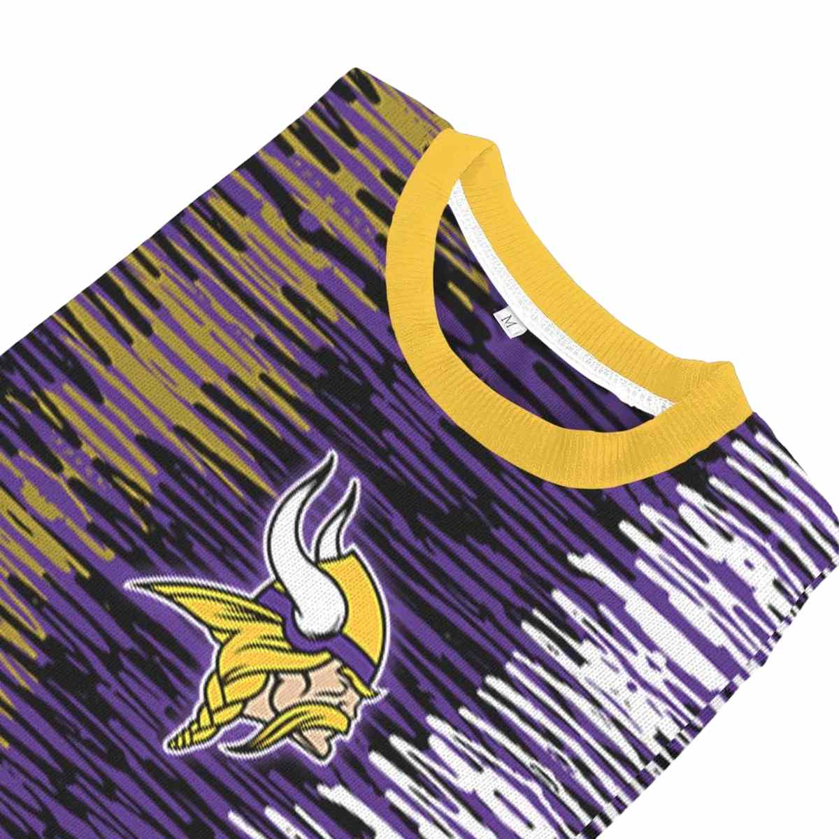 Gear up with the ultimate expression of team spirit and style with our Personalized Minnesota Vikings Logo Camouflage Stripe Purple White AOP Sweatshirt. Perfect for die-hard fans and anyone looking to elevate their casual wardrobe, this sweatshirt is a versatile piece that fits right in at the stadium, during a weekend hangout, or while lounging at home. Its unique all-over print combines the boldness of camouflage with the iconic Vikings logo, making it a standout choice for any occasion.