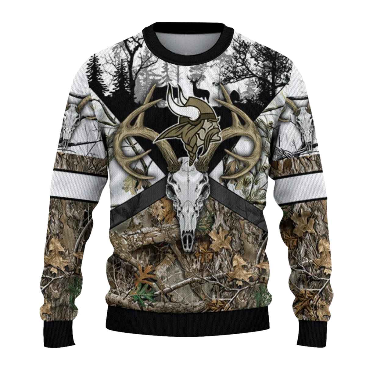 Show your team spirit with our Personalized Minnesota Vikings Logo Deer Antlers AOP Sweatshirt, designed for fans who embrace both style and comfort. Perfect for game day, casual outings, or lounging at home, this sweatshirt combines vibrant graphics with a cozy fit, making it an essential addition to your streetwear wardrobe.