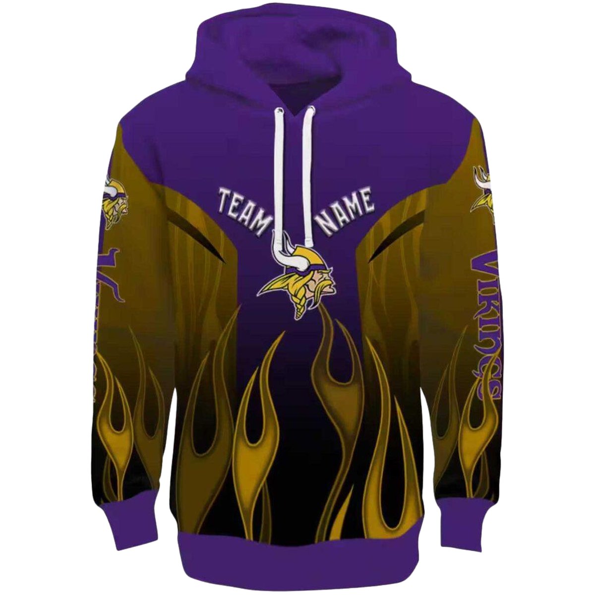 Introducing the Personalized Minnesota Vikings Logo Flame Design Purple AOP Hoodie, a must-have for die-hard fans and casual wearers alike. This unique hoodie is perfect for game day, lounging at home, or enjoying outdoor activities. With its eye-catching design and relaxed fit, it’s a standout piece that combines style with comfort, making it a great addition to any wardrobe.