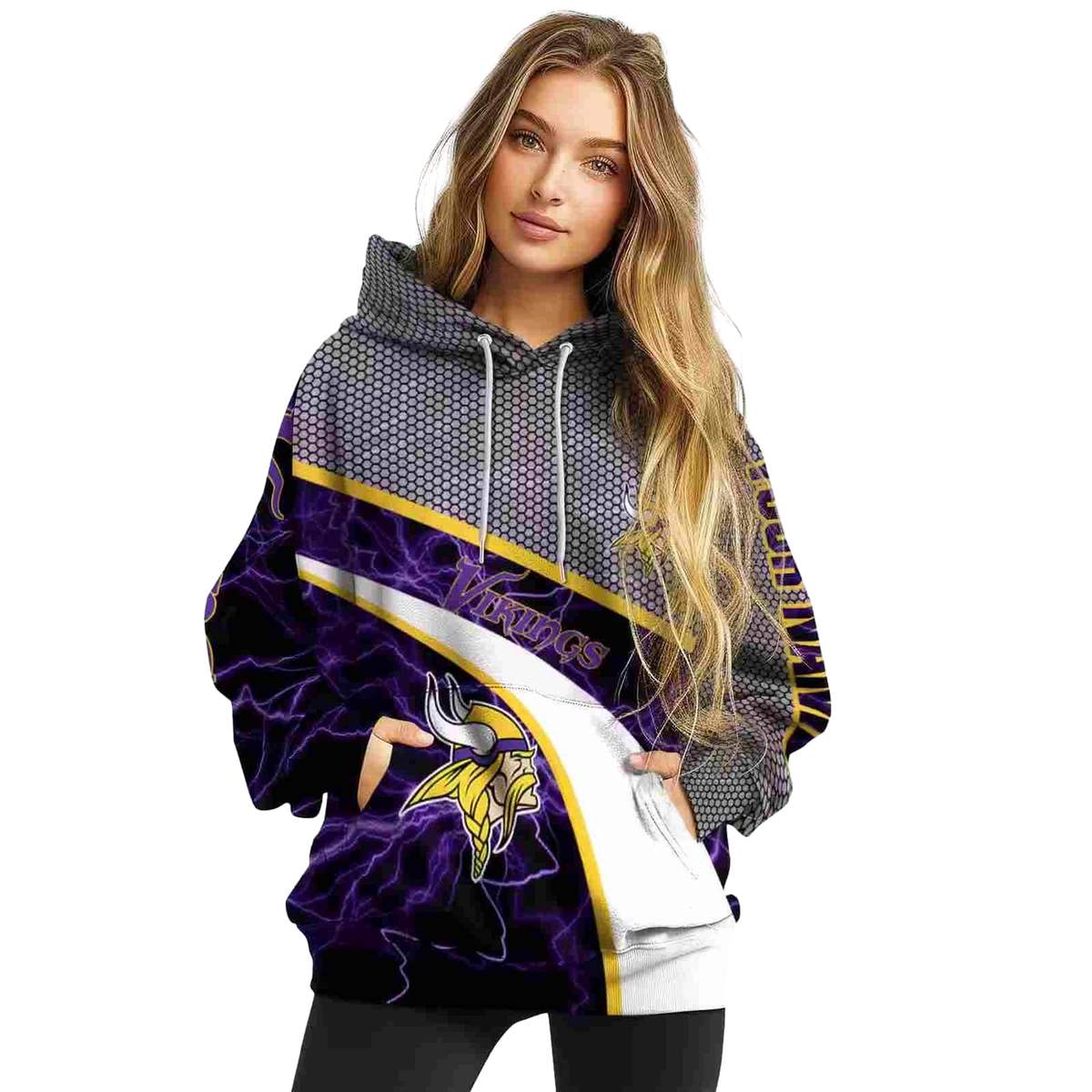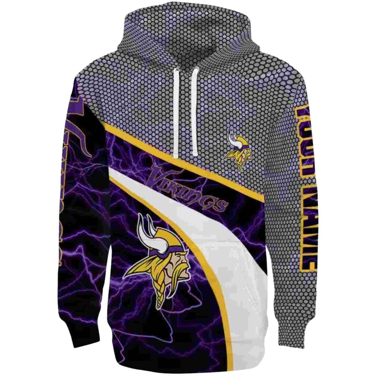 Show your pride for the Minnesota Vikings with our Personalized Minnesota Vikings Logo Hexagonal Mesh All-Over Print Hoodie. Perfect for fans of all ages, this hoodie is ideal for casual outings, game days, or cozy nights in. Its unique hexagonal mesh design sets it apart, making it a standout piece in any wardrobe.