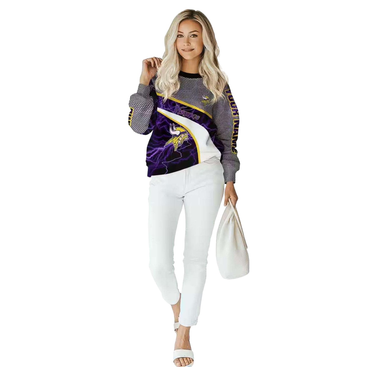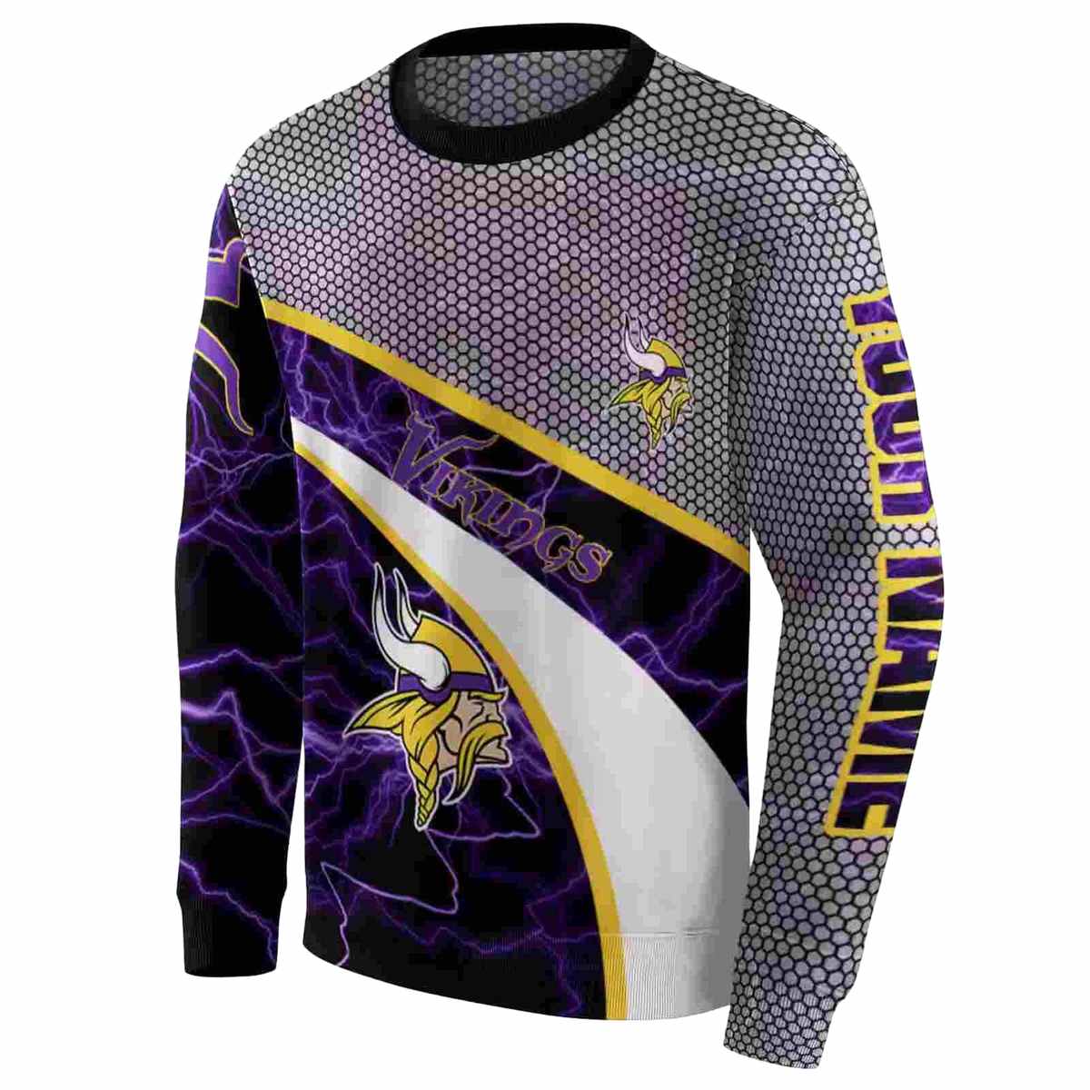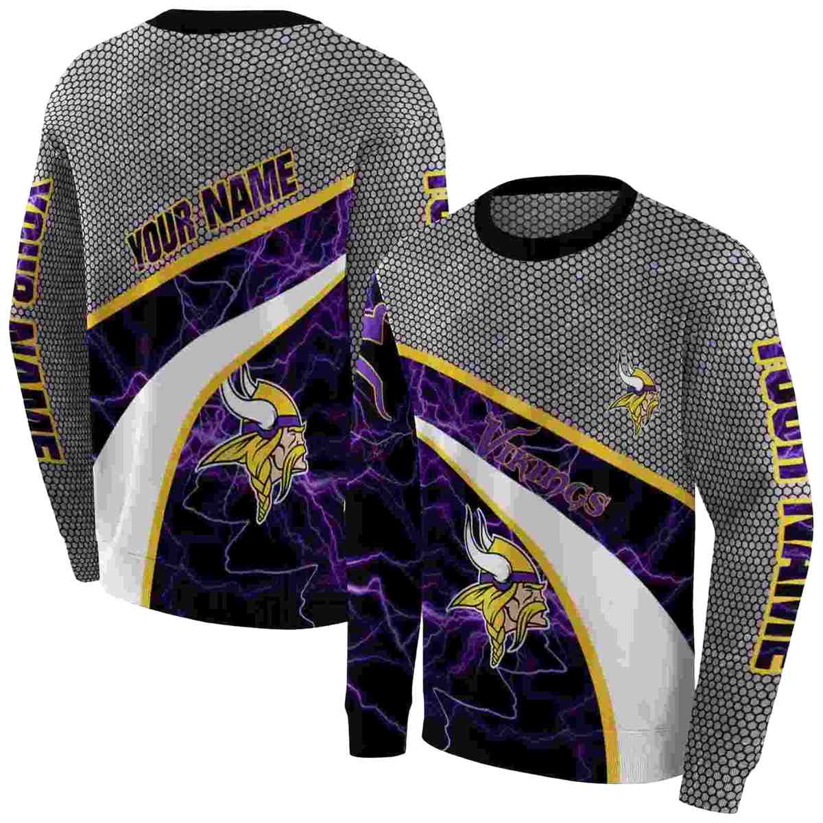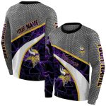Elevate your streetwear game with our Personalized Minnesota Vikings Logo Hexagonal Mesh Purple Black Gray AOP Sweatshirt. Designed for die-hard fans and fashion-forward individuals alike, this sweatshirt is perfect for casual outings, lounging at home, or hitting the gym. Its all-over print showcases a unique hexagonal mesh pattern, making it a standout piece that seamlessly blends sports enthusiasm with modern style.