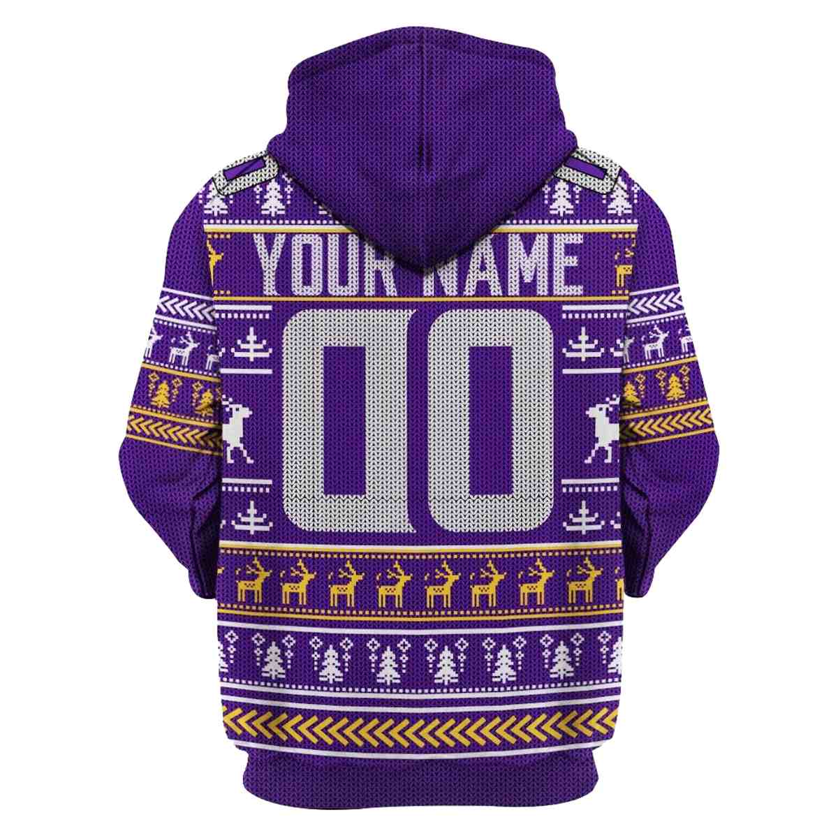 Embrace your love for the Minnesota Vikings this winter with our Personalized Minnesota Vikings Logo Lover Ugly Christmas All-Over Print Hoodie. Designed for passionate fans, this cozy yet lightweight hoodie is perfect for casual outings, holiday gatherings, or simply lounging at home while showcasing your team spirit. Its unique all-over print adds a festive touch, making it a standout piece for any Vikings supporter.
