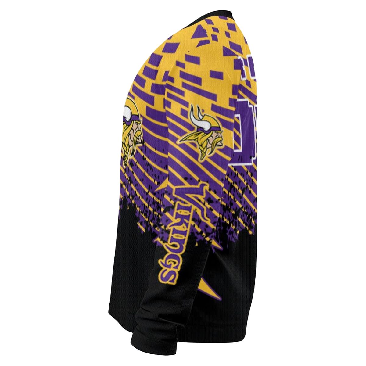 Elevate your streetwear game with our Personalized Minnesota Vikings Logo Pixel Flow Purple Black AOP Sweatshirt. Designed for die-hard fans and style enthusiasts alike, this unique sweatshirt is perfect for casual outings, game days, or just lounging at home. Its eye-catching all-over print brings a modern twist to a classic favorite, making it a standout piece in any wardrobe.