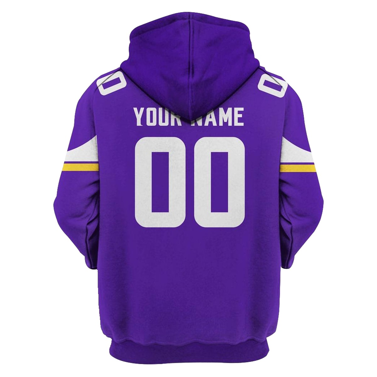 Show your team spirit with our Personalized Minnesota Vikings Logo Purple Pattern All-Over Print Hoodie! Perfect for die-hard Vikings fans, this hoodie is ideal for casual outings, game days, or simply lounging around. Its unique design combines comfort and style, making it a must-have addition to your wardrobe.