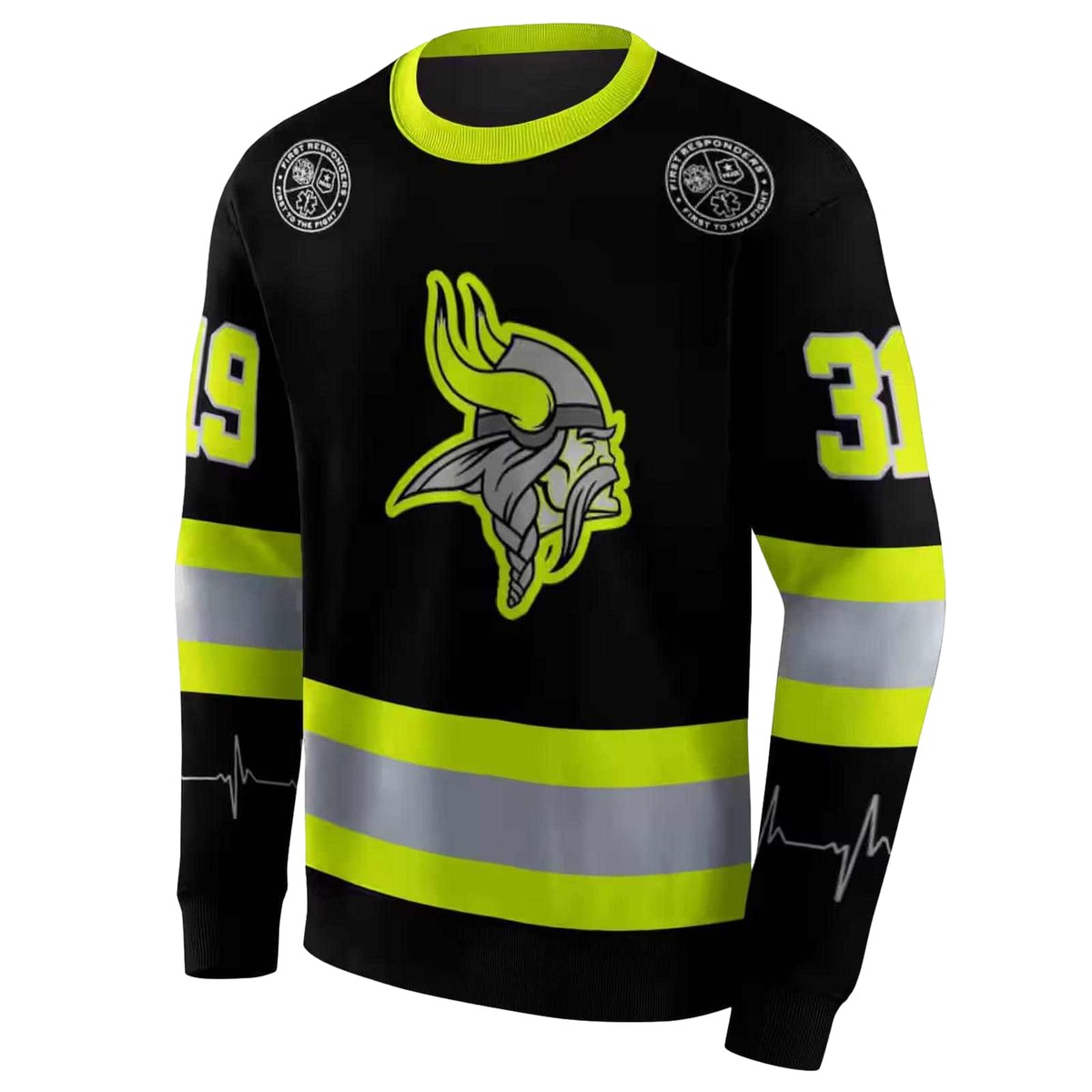Personalized Minnesota Vikings Logo Safety Motif Black Neon Green AOP Sweatshirt