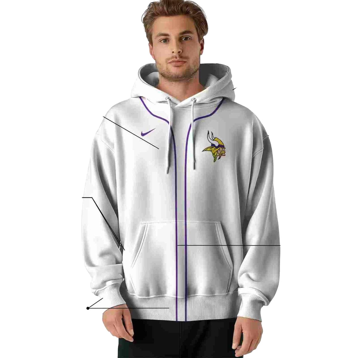 Show your team spirit with our Personalized Minnesota Vikings Logo Sporty Stripe White All-Over Print Hoodie. Perfect for fans and anyone looking to add a touch of sporty flair to their casual wardrobe, this hoodie is designed for both men and women who want to stay cozy while out and about. Whether you’re cheering from the stands or enjoying a casual day outdoors, this hoodie makes a statement while providing the ultimate comfort.