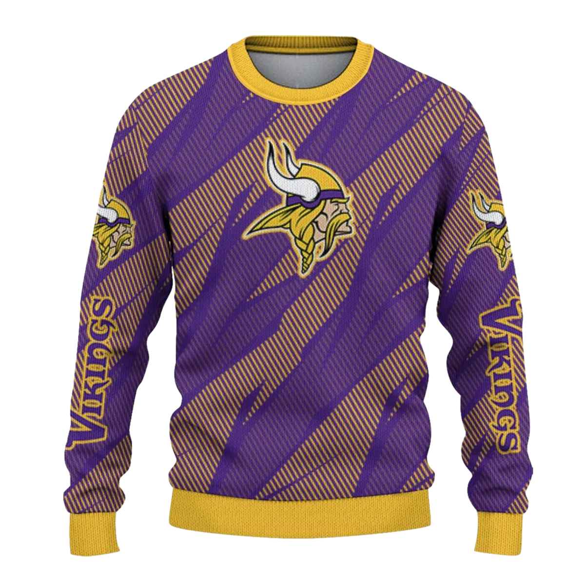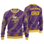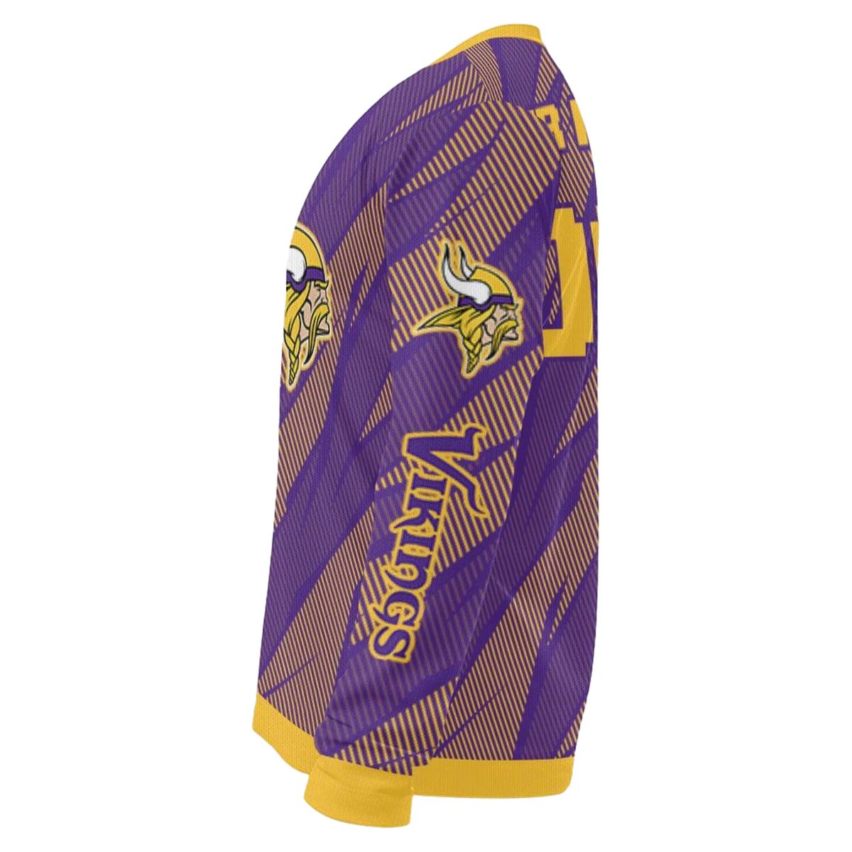 Get ready to elevate your streetwear game with our Personalized Minnesota Vikings Logo Stripe Motion Purple AOP Sweatshirt. This stylish piece is perfect for any fan looking to showcase their team spirit while enjoying maximum comfort. Whether you’re heading to a game, lounging at home, or hitting the gym, this sweatshirt combines vibrant team graphics with a contemporary edge, making it a must-have for your wardrobe.