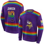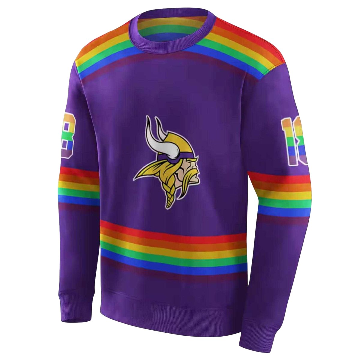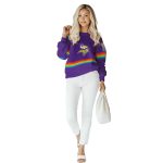 Unleash your team spirit with our Personalized Minnesota Vikings Rainbow Stripes Purple AOP Sweatshirt, designed for die-hard fans and anyone who loves to stand out. Perfect for casual outings, game days, or just lounging at home, this sweatshirt combines comfort and style with a vibrant design that showcases your loyalty in a fun and unique way.