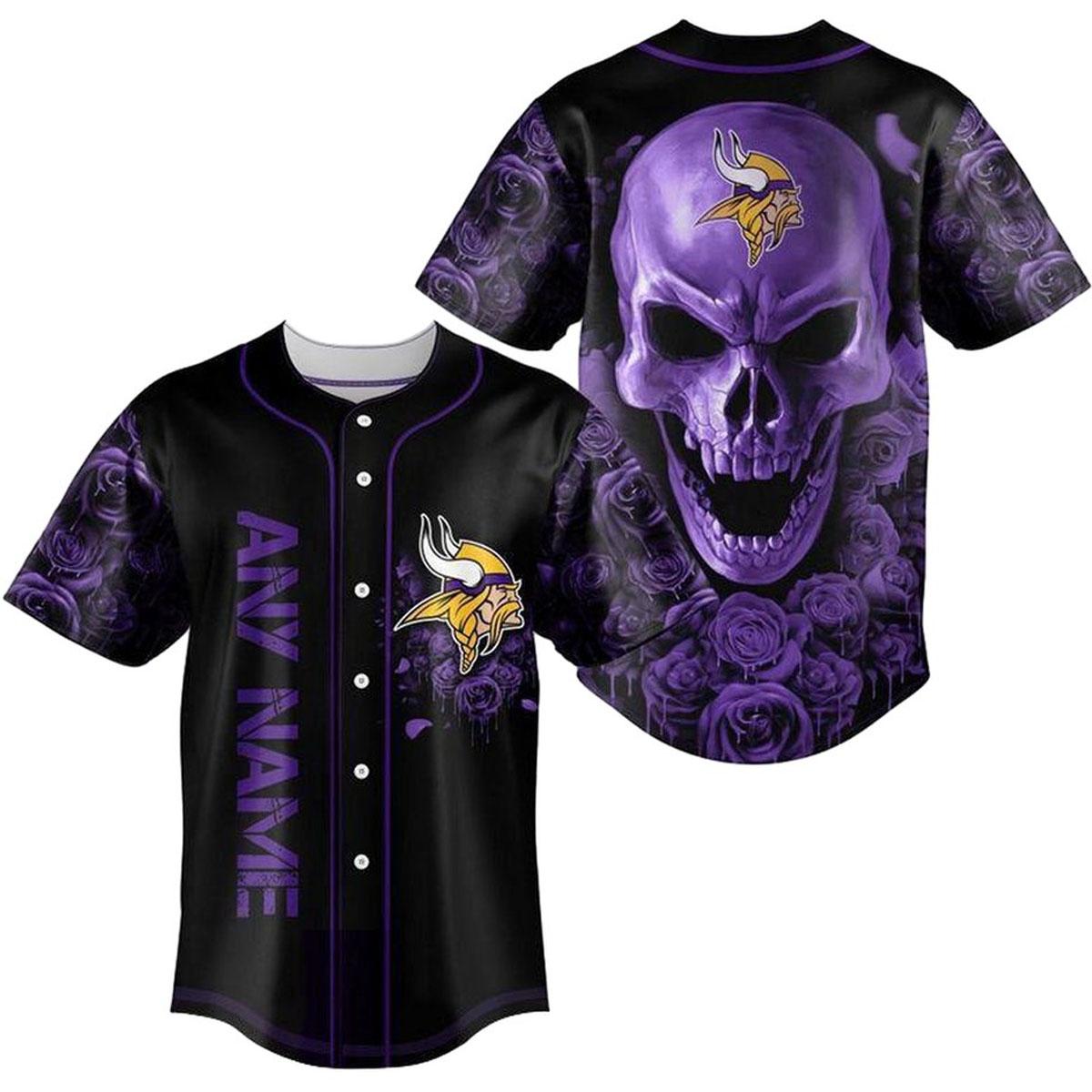 Elevate your game day experience with our Personalized Minnesota Vikings Rose Skull Baseball Jersey. Perfect for die-hard fans and casual wear alike, this jersey combines sporty style with unique flair, making it an ideal choice for sporting events, team uniforms, or just hanging out with friends.