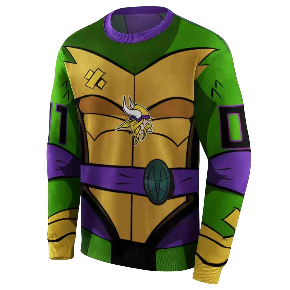 Introducing the Personalized Minnesota Vikings Superhero Armor Purple Green AOP Sweatshirt, a must-have for die-hard fans and streetwear enthusiasts alike. This unique sweatshirt is perfect for game days, casual outings, or lounging at home while showcasing your team spirit with its vibrant all-over print. With a relaxed fit and modern design, it’s tailored for comfort and style, making it an ideal addition to any wardrobe.