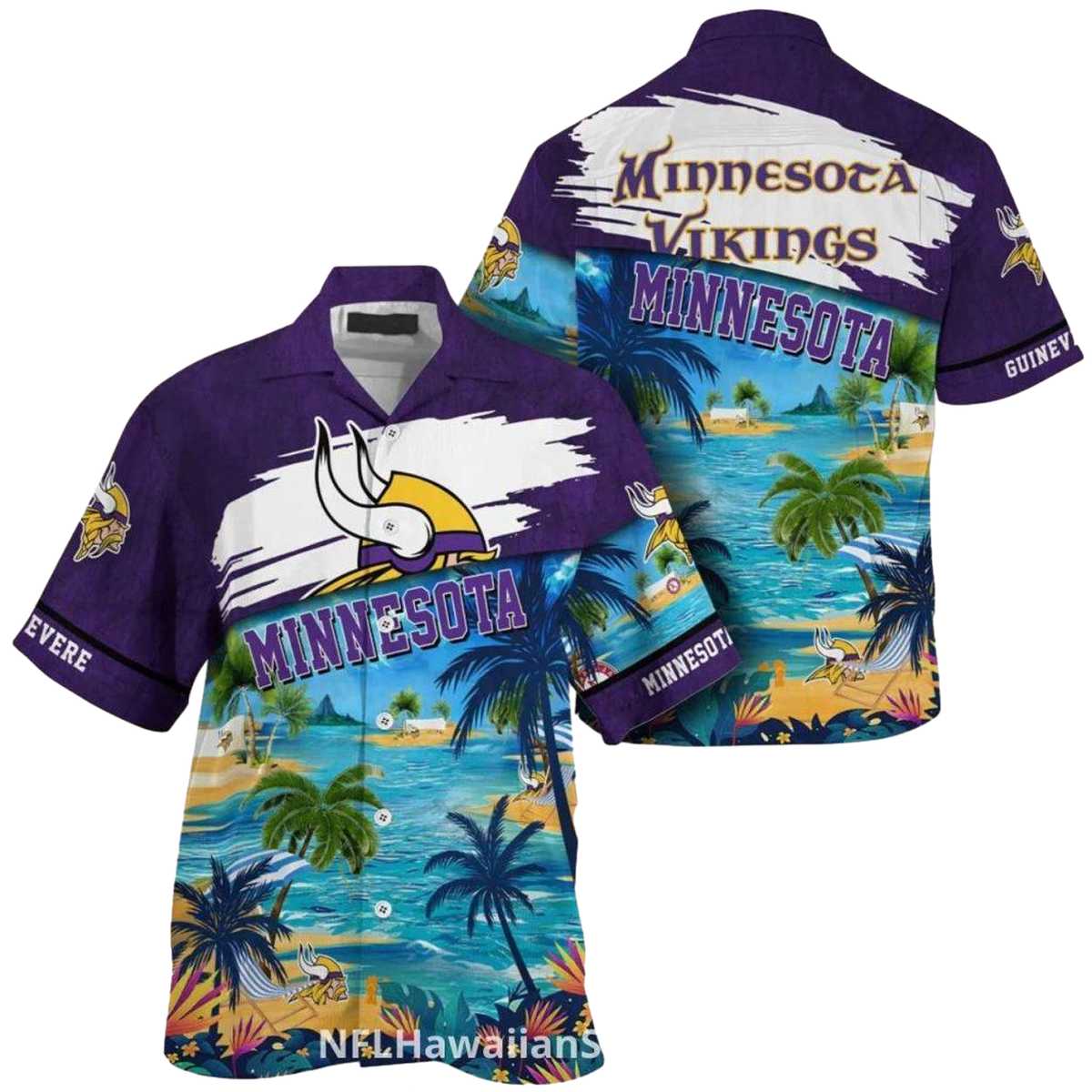 Step into summer vibes with our Personalized Minnesota Vikings Team Logo Beach Sunset Hawaiian Shirt, designed for die-hard fans and adventurous spirits alike. This eye-catching shirt features a stunning graphic that captures the essence of beach sunsets, making it the perfect companion for tropical getaways, beach parties, or casual outings with friends. Stand out and show off your team pride in style!