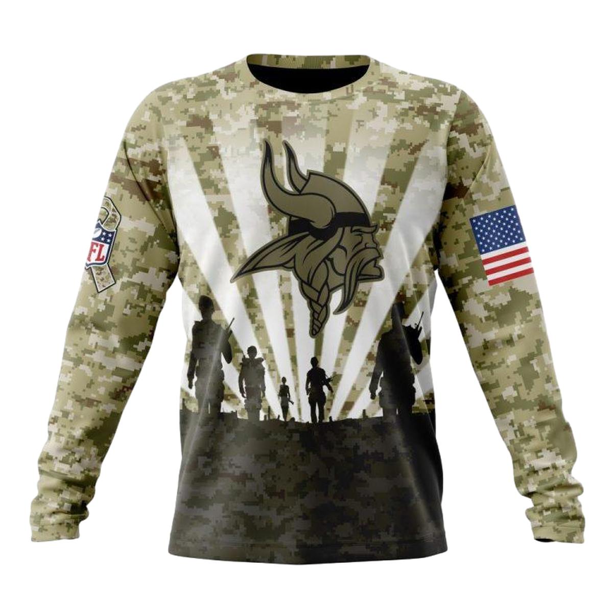 Show your unwavering support for the Minnesota Vikings with our Personalized Veterans and Families All-Over Printed Sweatshirt. This cozy yet stylish sweatshirt is perfect for die-hard fans who want to stay warm while cheering on their team. Ideal for casual outings, game days, or simply lounging at home, it combines comfort with a unique design that celebrates the spirit of community and camaraderie.