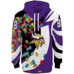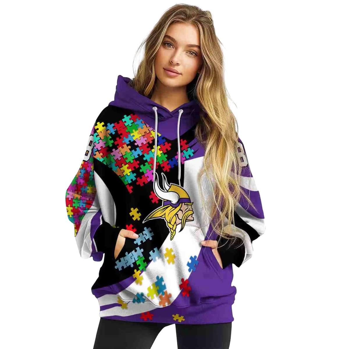 Show your team spirit and embrace the chill with our Personalized Minnesota Vikings Puzzle Pieces Purple AOP Hoodie. Perfect for true fans, this cozy hoodie is ideal for casual outings, game days, or simply lounging at home. Its unique all-over print design sets it apart, making it a standout piece in any Vikings fan’s wardrobe.