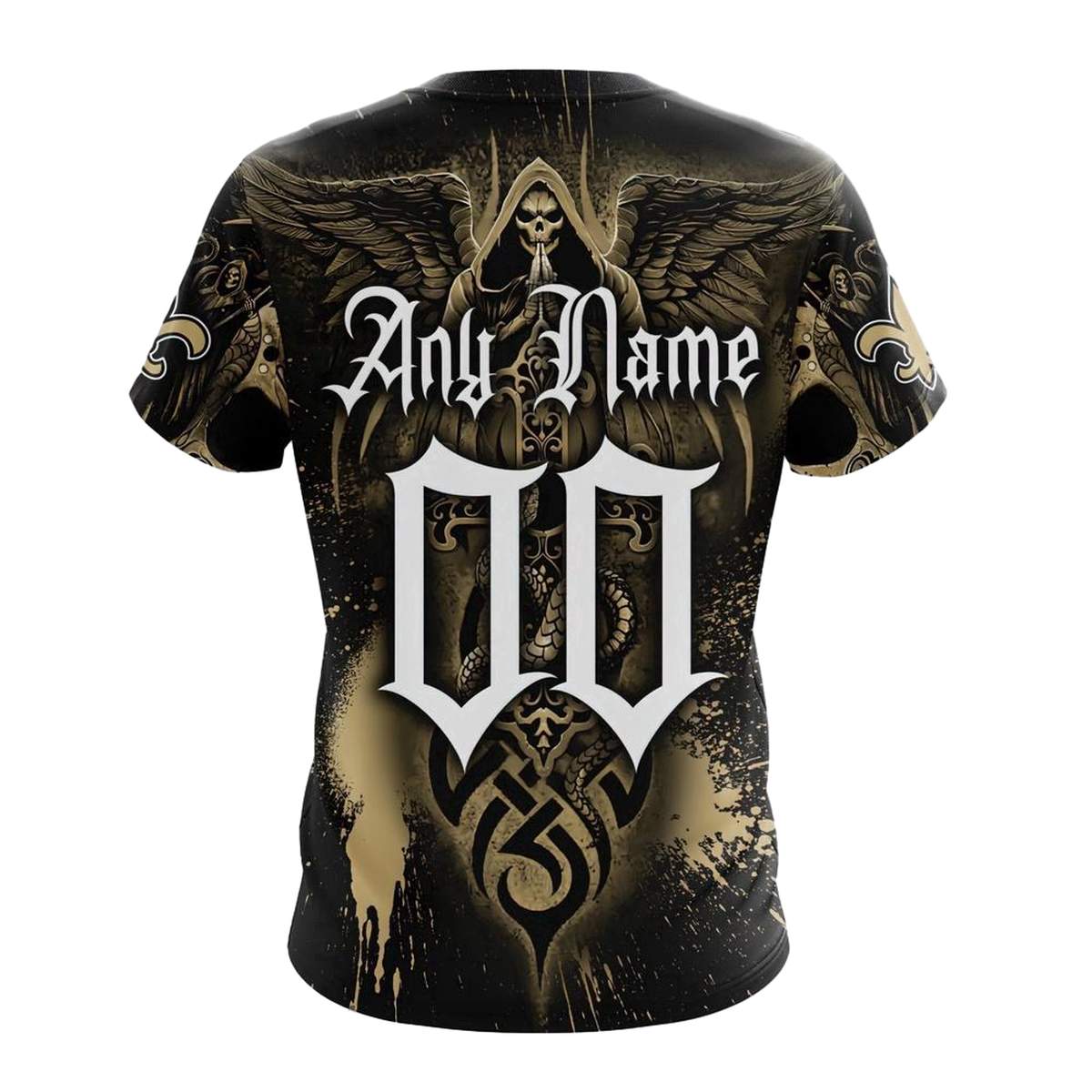Show off your team spirit with our Personalized New Orleans Saints Angel Skull AOP T-Shirt! This unique graphic tee is perfect for fans who want to stand out during game day or any casual outing. With its eye-catching design, it’s ideal for tailgating, hanging out with friends, or simply showcasing your love for the Saints in style.