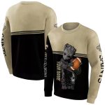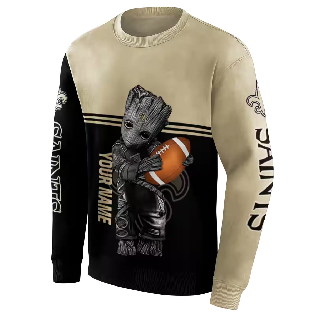 Personalized New Orleans Saints Baby Groot Hug Ball Gold Black AOP Sweatshirt