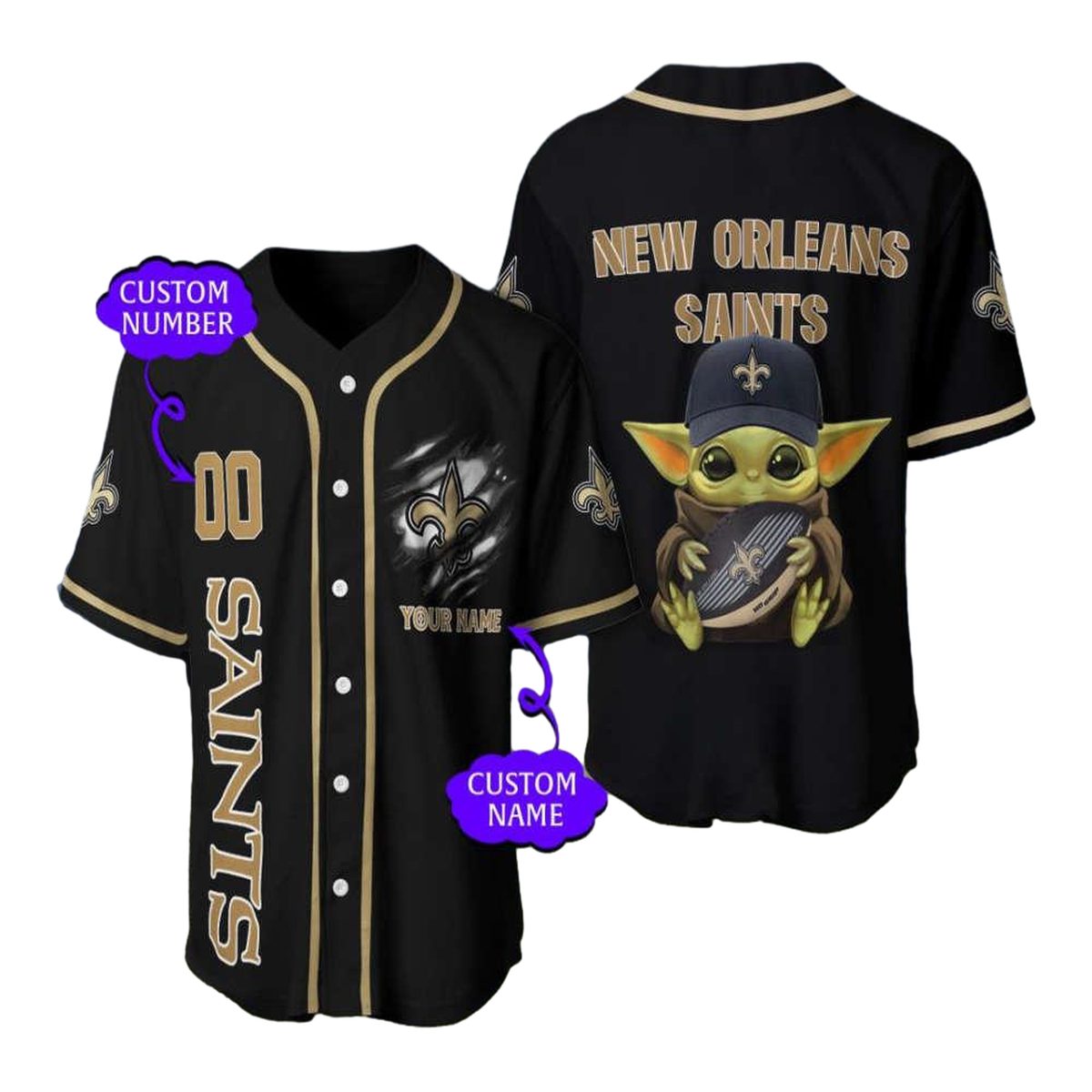 Get ready to showcase your love for the New Orleans Saints and the adorable Baby Yoda with our Personalized New Orleans Saints Baby Yoda Hug Ball Baseball Jersey. This stylish and sporty jersey is perfect for game day, casual outings, or creating a unique team uniform that stands out from the crowd.
