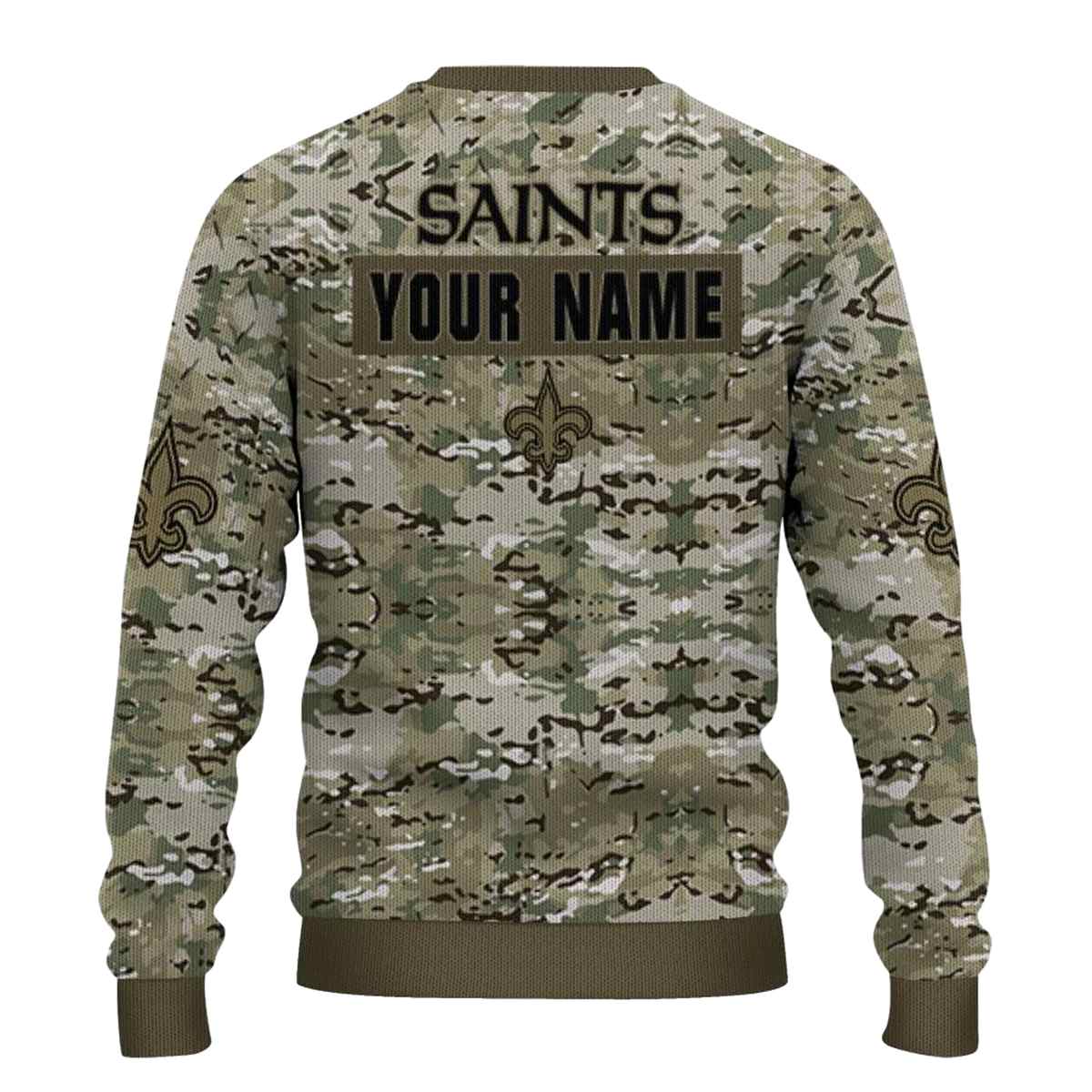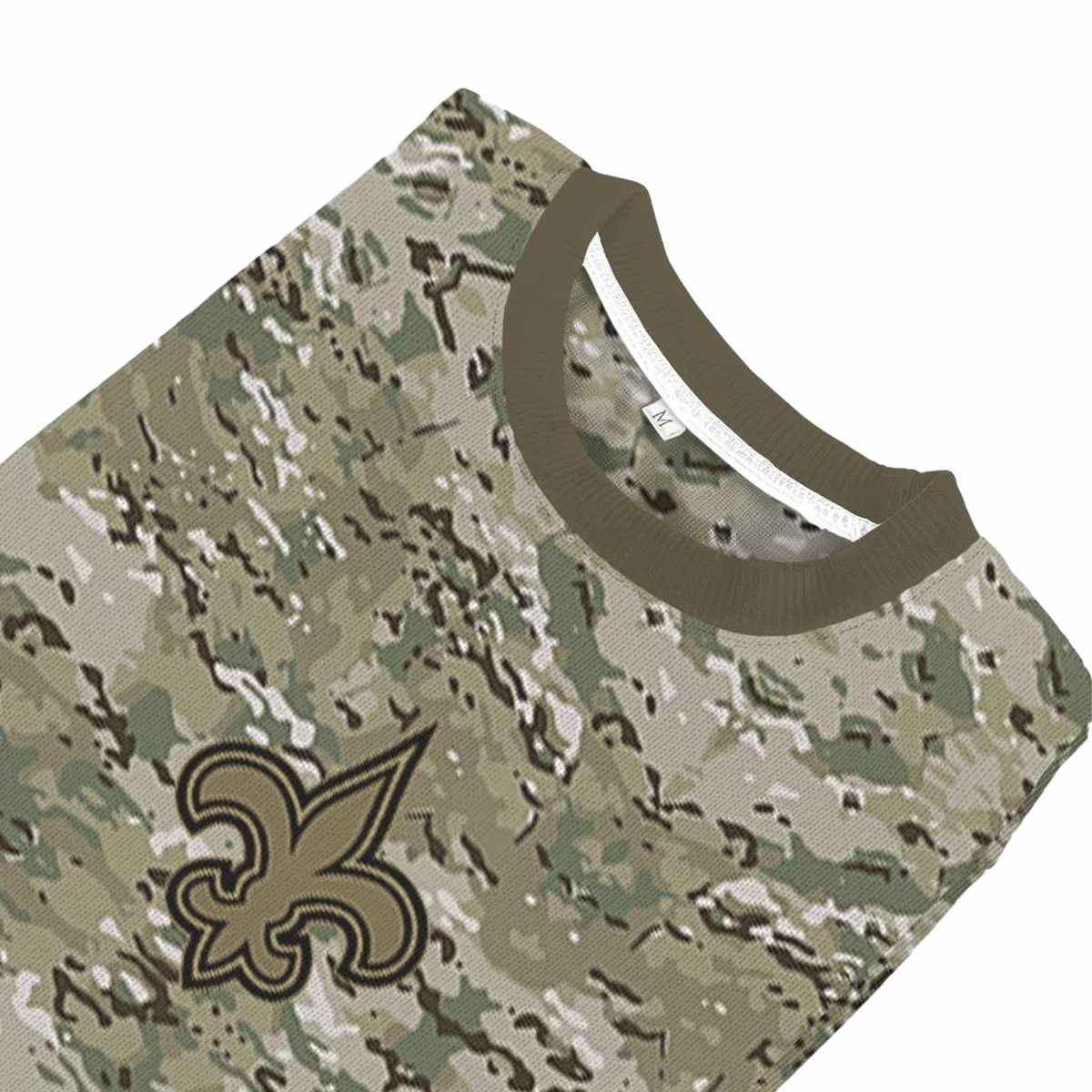 Elevate your streetwear game with our Personalized New Orleans Saints Camouflage Blend Pattern AOP Sweatshirt. Perfect for die-hard fans and street style enthusiasts alike, this sweatshirt seamlessly blends comfort and flair, making it ideal for casual outings, game days, or lounging at home. With its unique camouflage design, it makes a bold statement while keeping you cozy.