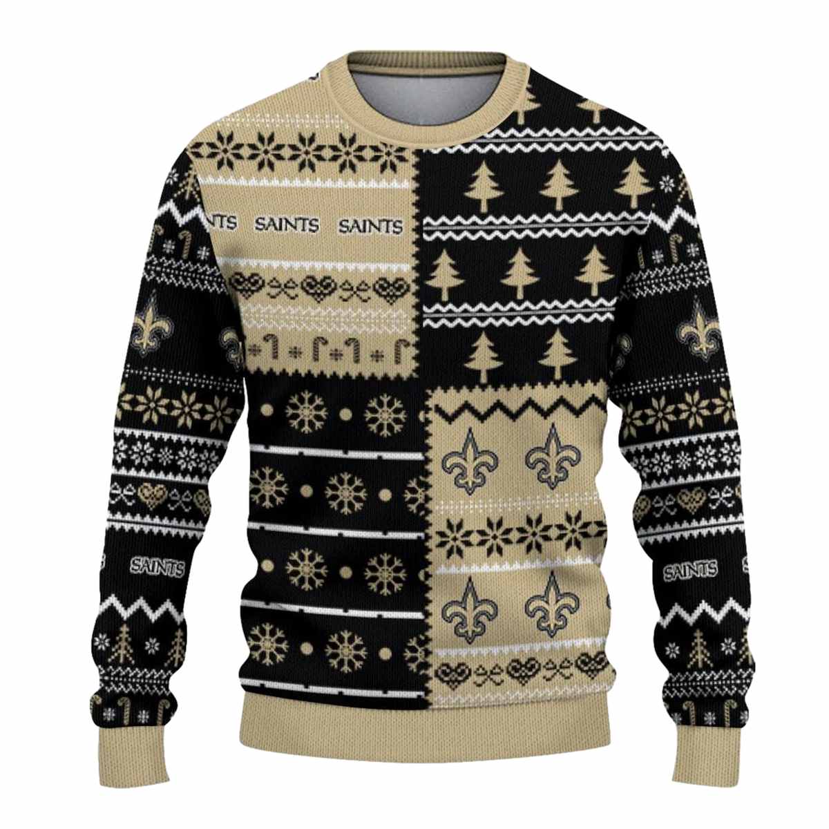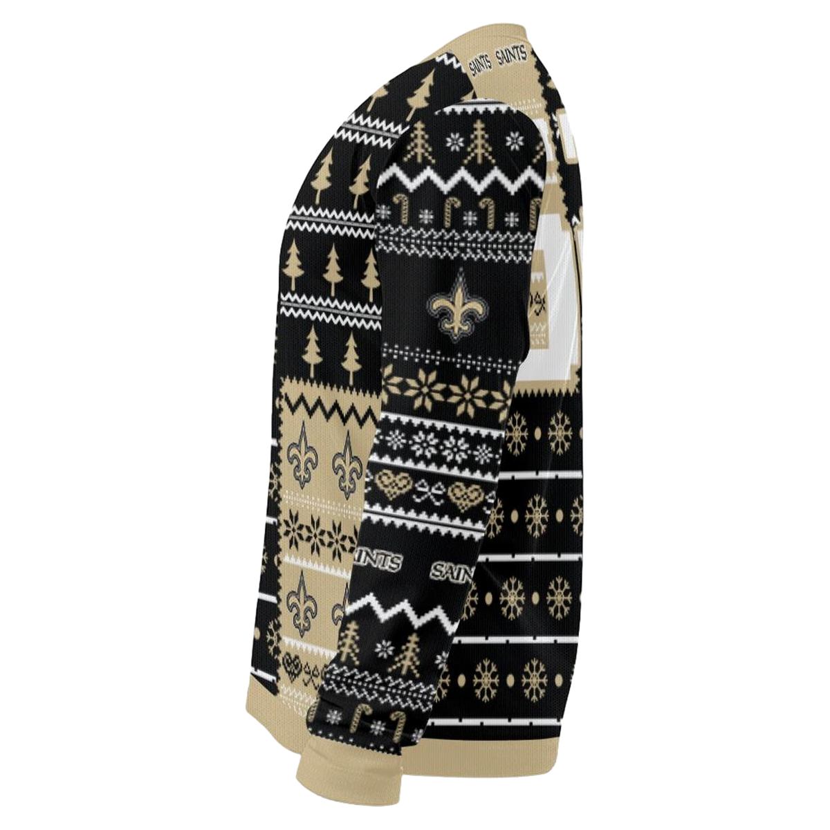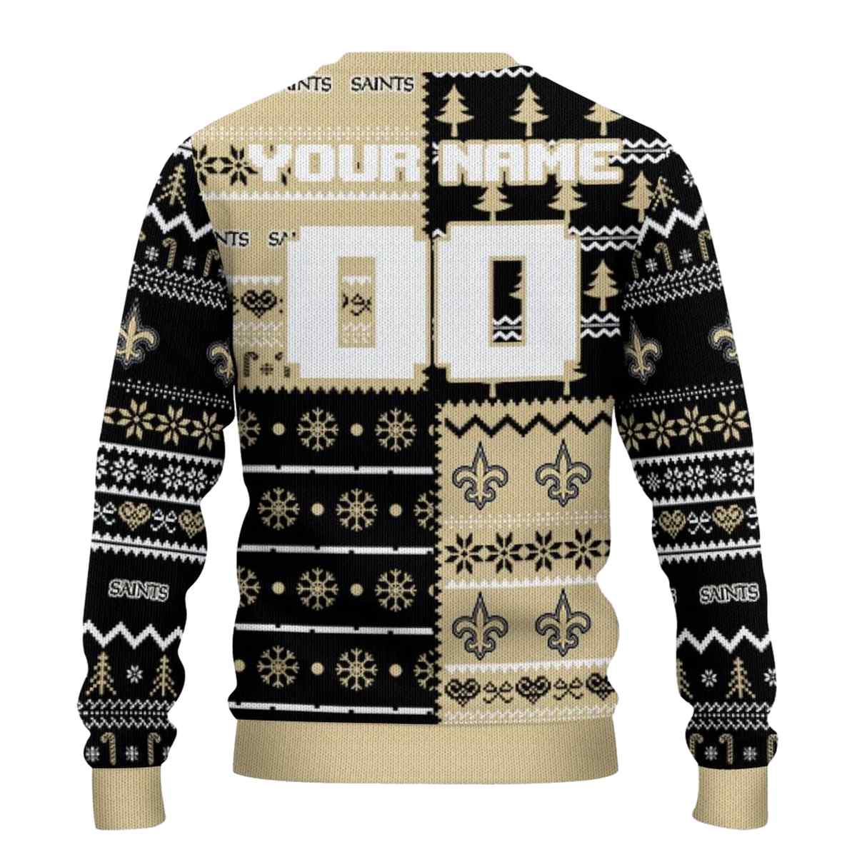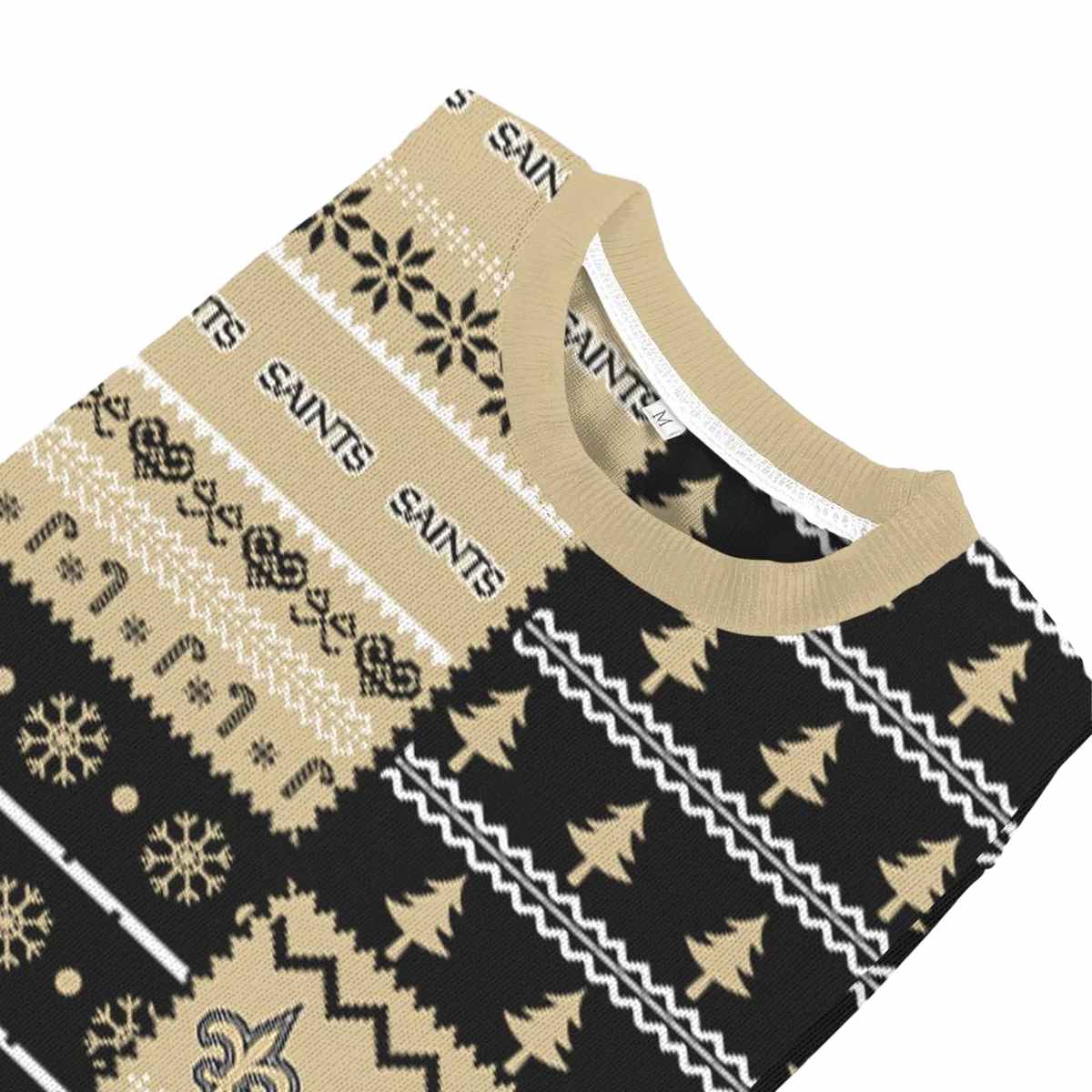 Celebrate the holiday season in style with our Personalized New Orleans Saints Christmas Tree Gold And White AOP Sweatshirt. Perfect for die-hard Saints fans, this cozy sweatshirt is ideal for festive gatherings, casual outings, or simply lounging at home while showing off your team spirit. Its unique all-over print brings a modern twist to traditional holiday wear, making it a standout piece in any streetwear closet.