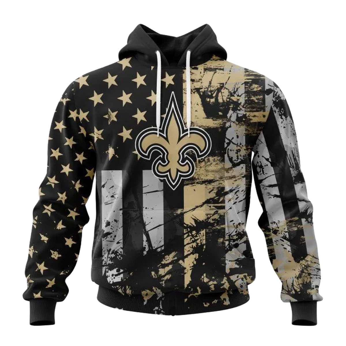 Show your team spirit and love for the Big Easy with our Personalized New Orleans Saints Classic Grunge American Flag All-Over Print Hoodie. Perfect for die-hard fans and casual wearers alike, this hoodie is ideal for game days, outdoor events, or simply lounging in style while celebrating your favorite city and team. With its unique design, it stands out in any crowd, making it a must-have for any Saints supporter.