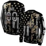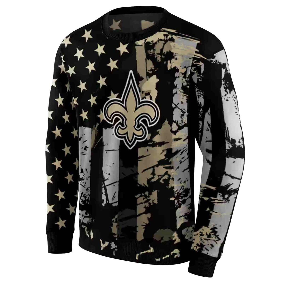 Show your passion for the New Orleans Saints with this Personalized Distressed Flag Gold Black All-Over Printed Sweatshirt. Perfect for fans looking to showcase their team pride, this sweatshirt is ideal for casual outings, game day festivities, or lounging at home. Its unique design brings a modern twist to classic team apparel, making it a standout piece in any streetwear collection.