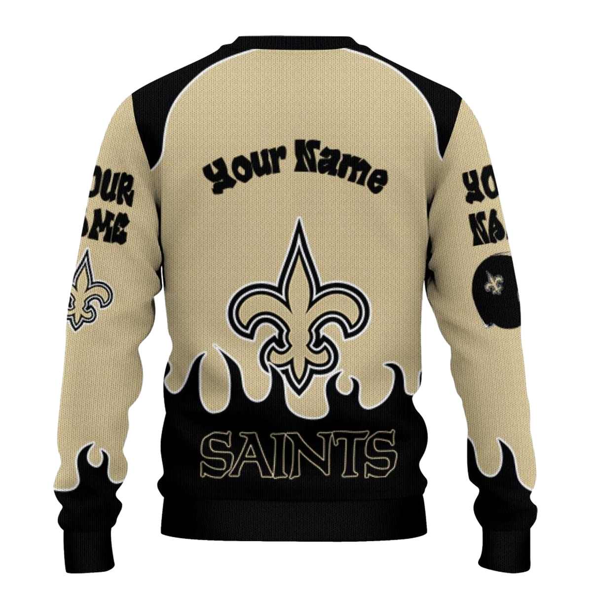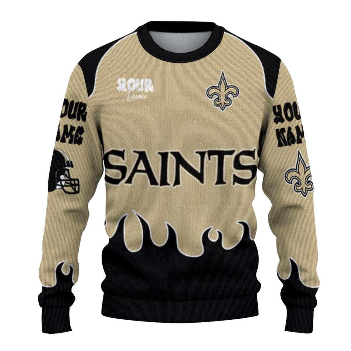 Elevate your streetwear game with our Personalized New Orleans Saints Flame Border Gold And Black AOP Sweatshirt. Designed for true fans and fashion enthusiasts alike, this sweatshirt is perfect for casual outings, game days, or just lounging in style. Its unique all-over print adds a modern edge, making it a standout piece in any wardrobe.