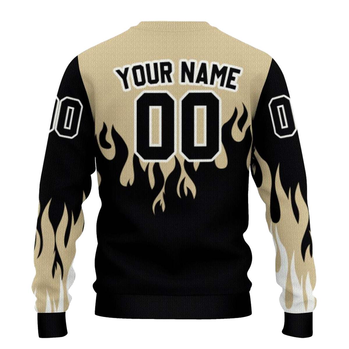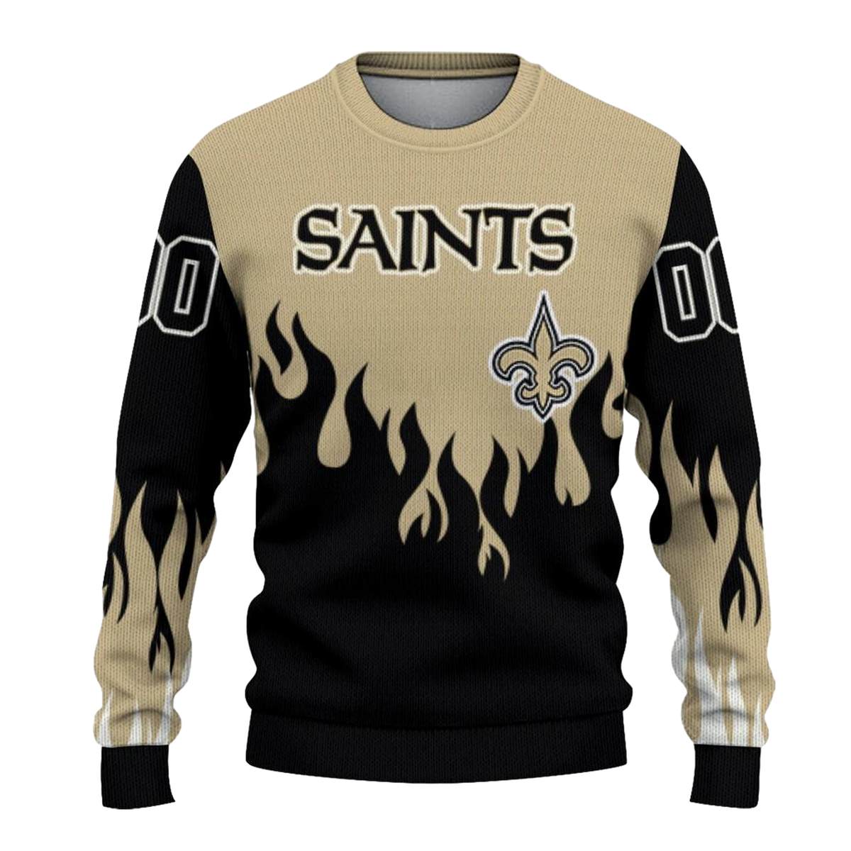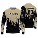 Personalized New Orleans Saints Flame Outline Gold Black AOP Sweatshirt