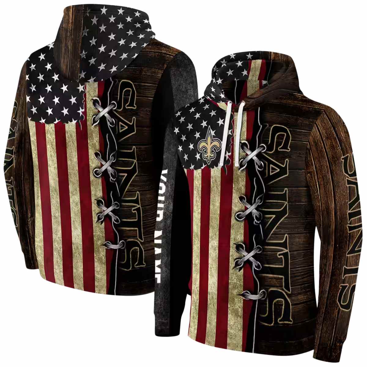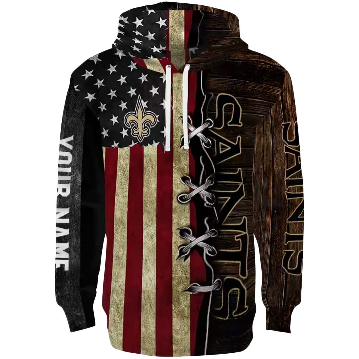 Show your team spirit with our Personalized New Orleans Saints Logo and American Pride All-Over Printed Hoodie, designed for fans who love to express their passion for football and patriotism. Perfect for casual outings, game days, or cozy nights in, this hoodie combines comfort with bold style, making it a unique addition to your wardrobe that stands out in any crowd.