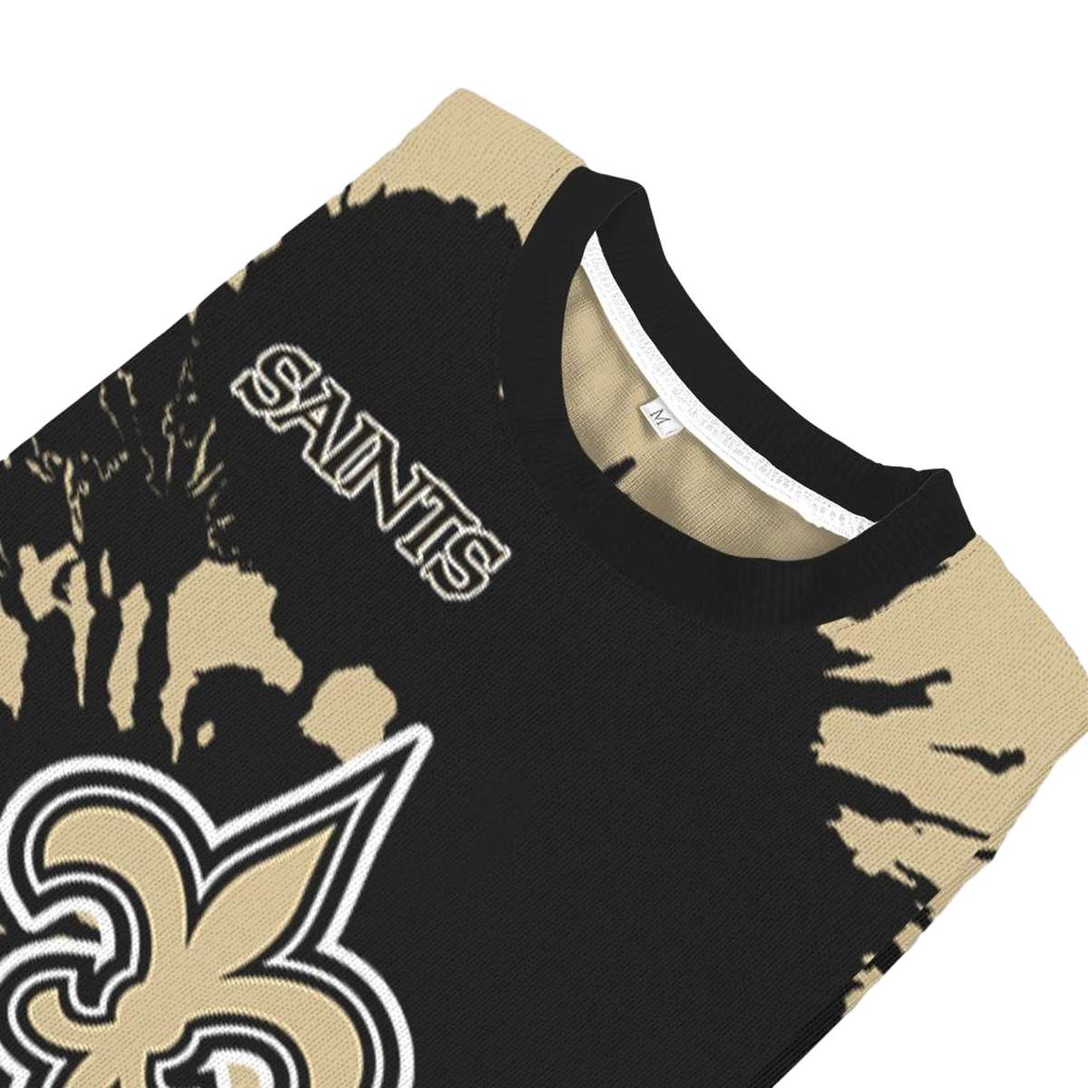 Unleash your team spirit with our Personalized New Orleans Saints Logo And Burst Swirl Gold Black AOP Sweatshirt. Perfect for die-hard fans and casual wearers alike, this stylish piece is great for game days, lounging at home, or hitting the gym. Its unique all-over print design makes a bold statement, ensuring you stand out in the crowd while showcasing your love for the Saints.