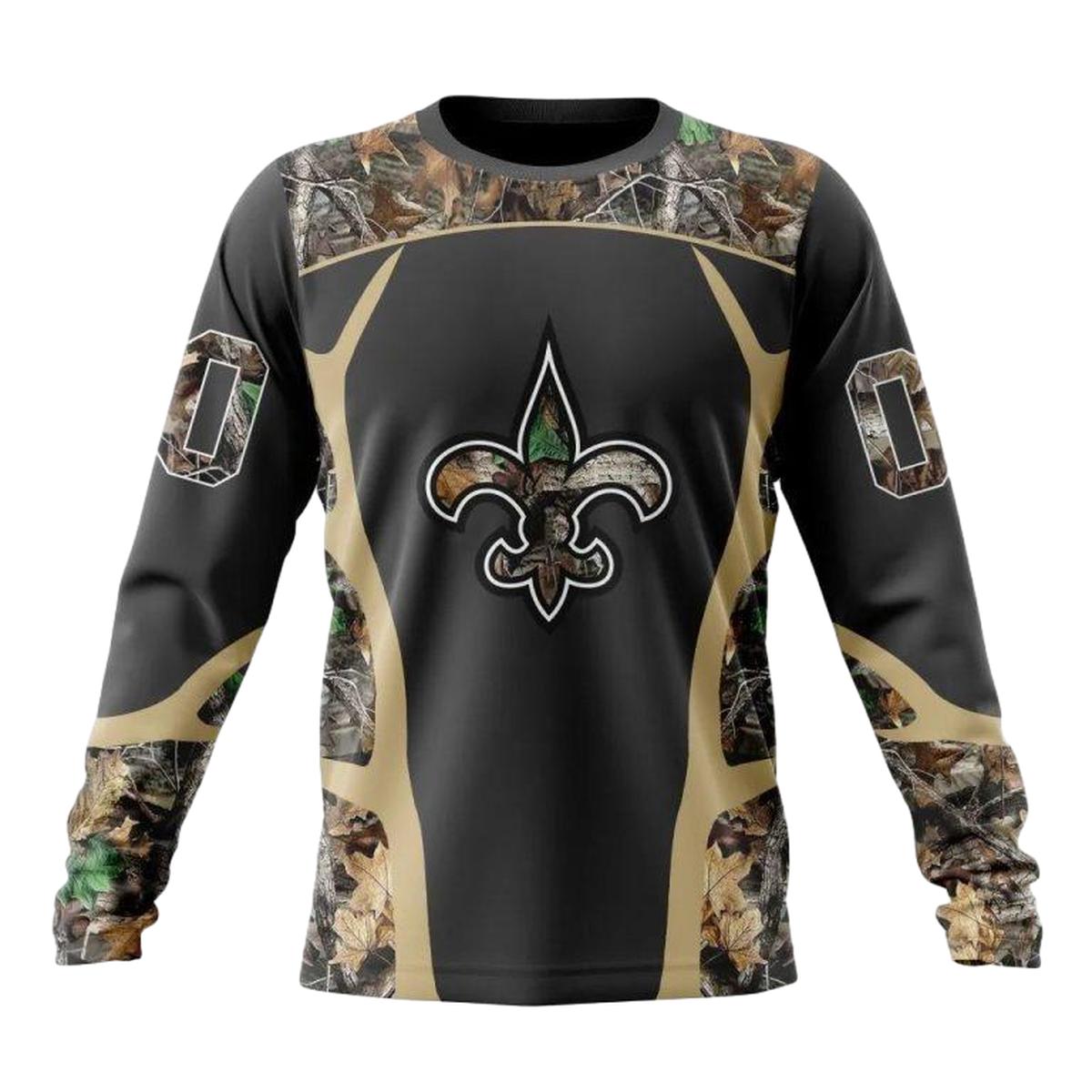 Introducing the Personalized New Orleans Saints Logo And Camo Hunting AOP Sweatshirt, a must-have for every dedicated fan and outdoorsy spirit. This unique sweatshirt seamlessly blends your love for the Saints with a rugged camo design, making it perfect for casual outings, game days, or adventures in the wild. Its modern relaxed fit ensures you stay comfortable while showcasing your team pride with a distinctive edge.