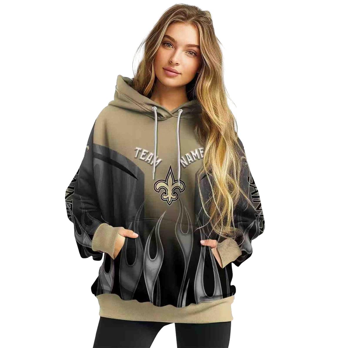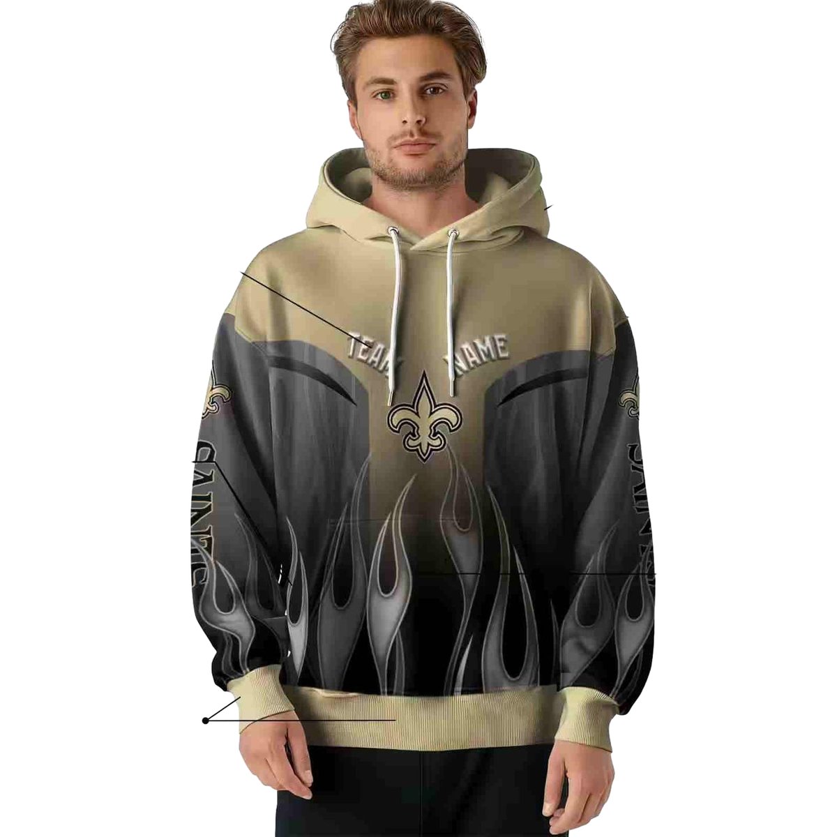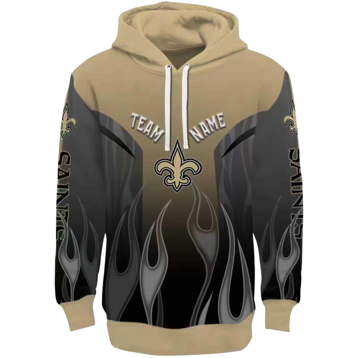 Personalized New Orleans Saints Logo And Flame Design Gold AOP Hoodie