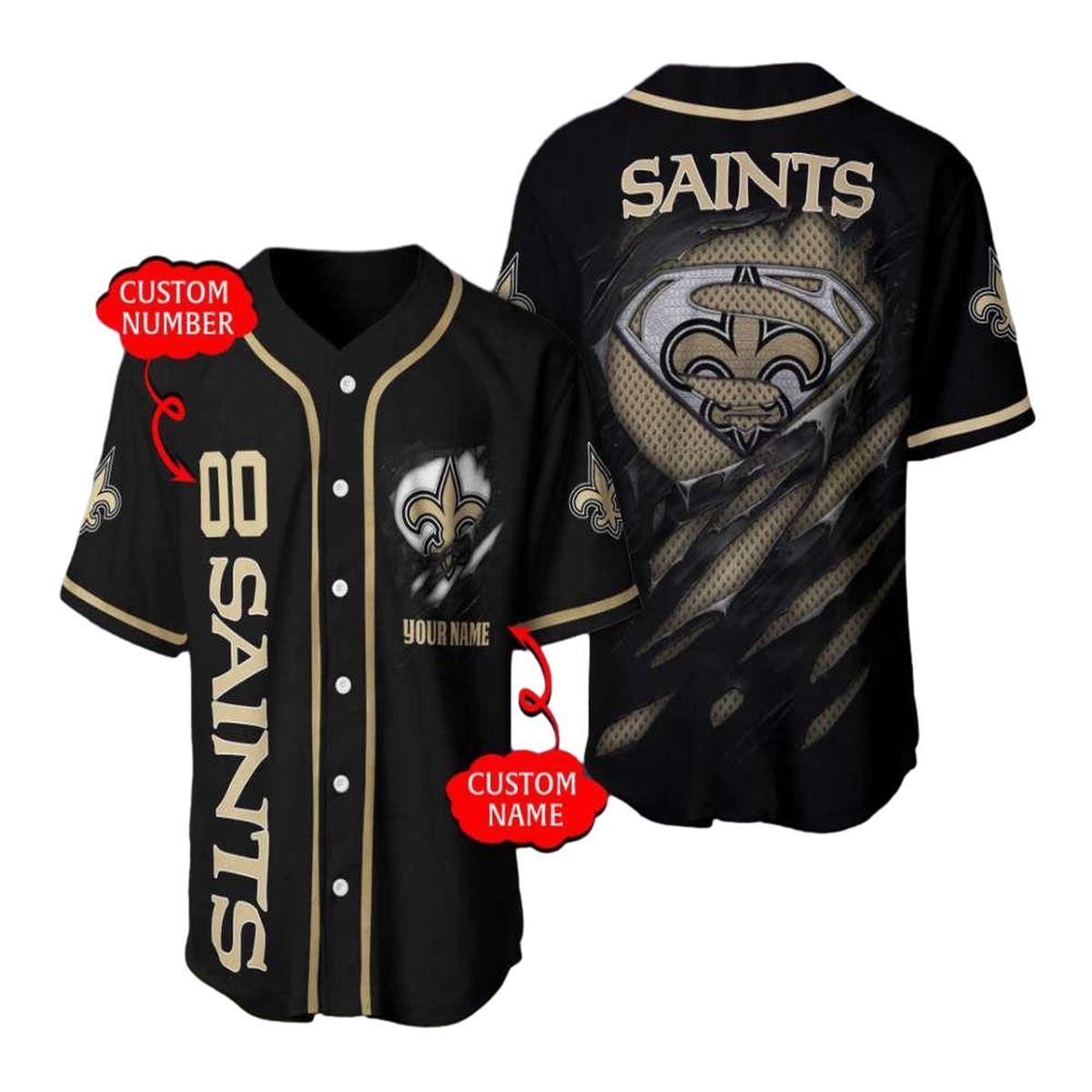 Elevate your game day experience with our Personalized New Orleans Saints Logo and Super Man Baseball Jersey. This stylish jersey is perfect for die-hard fans and athletes alike, making it an ideal choice for sporting events, casual outings, or your very own team uniform. Show off your unique style while cheering on your favorite team!