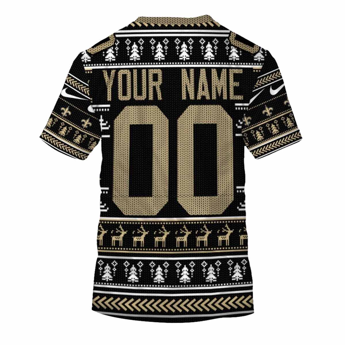 Celebrate your love for the New Orleans Saints with our Personalized New Orleans Saints Logo Christmas Pattern AOP T-shirt! This festive and unique graphic tee is perfect for fans looking to showcase their team spirit during the holiday season. Whether you’re heading to a tailgate, a casual gathering with friends, or just enjoying a cozy day at home, this shirt adds a fun twist to your wardrobe.