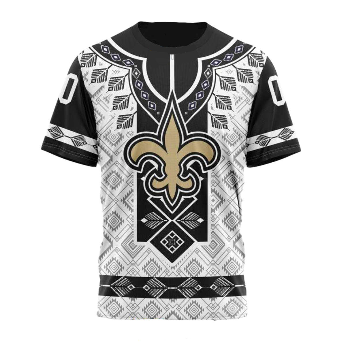 Show off your passion for the New Orleans Saints with our Personalized New Orleans Saints Native Pattern AOP T-Shirt! Perfect for fans who enjoy expressing their team spirit in a stylish way, this graphic tee is ideal for casual outings, game days, or simply lounging around. Its unique all-over print design makes it a standout piece that combines comfort with bold style.