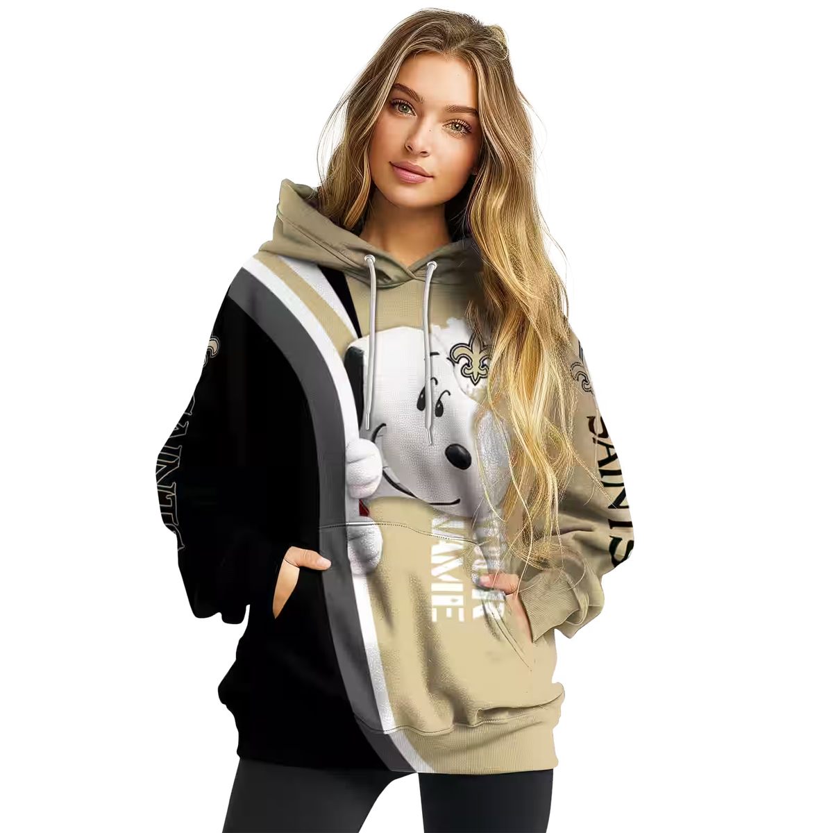 Embrace your love for the New Orleans Saints with our Personalized Peeking Snoopy Gold Black All-Over Print Hoodie. Perfect for fans who want to showcase their team spirit while staying cozy, this hoodie is ideal for casual outings, game days, or simply lounging at home. Its unique design combines playful elements with a sporty vibe, making it a standout addition to any fan’s wardrobe.