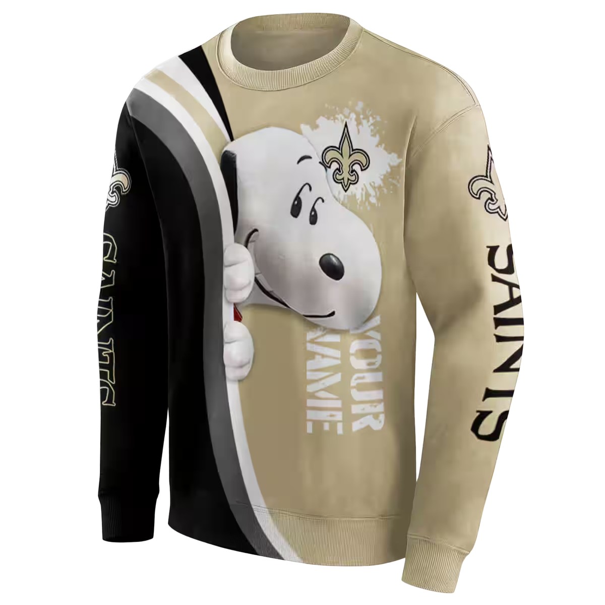 Personalized New Orleans Saints Peeking Snoopy Gold Black AOP Sweatshirt
