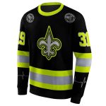 Personalized New Orleans Saints Safety Motif Black Neon Green AOP Sweatshirt