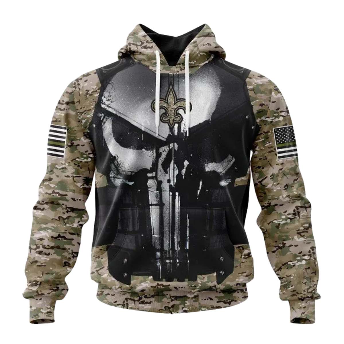 Personalized New Orleans Saints Skull Camo Veteran Kits AOP Hoodie