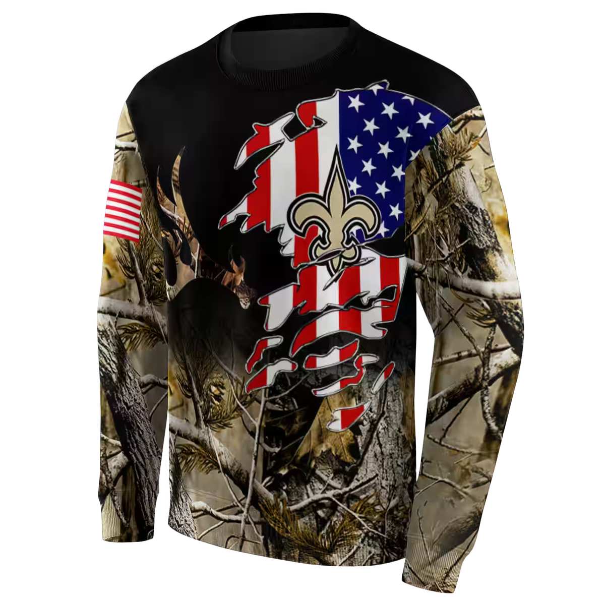Elevate your streetwear game with our Personalized New Orleans Saints Tree Camo US Flag AOP Sweatshirt. Perfect for fans and fashion enthusiasts alike, this unique piece combines team spirit with a modern twist. Whether you’re heading to a game, lounging at home, or hitting the gym, this sweatshirt is designed to keep you comfortable and stylish.