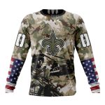 Show your unwavering support for the New Orleans Saints while embracing comfort and style with our Personalized New Orleans Saints Veteran Salute To Service AOP Sweatshirt. Perfect for passionate fans and those who appreciate the spirit of service, this sweatshirt is ideal for game days, casual hangouts, or cozy nights in. Its unique all-over print not only showcases your team pride but also adds a modern twist to your streetwear collection.