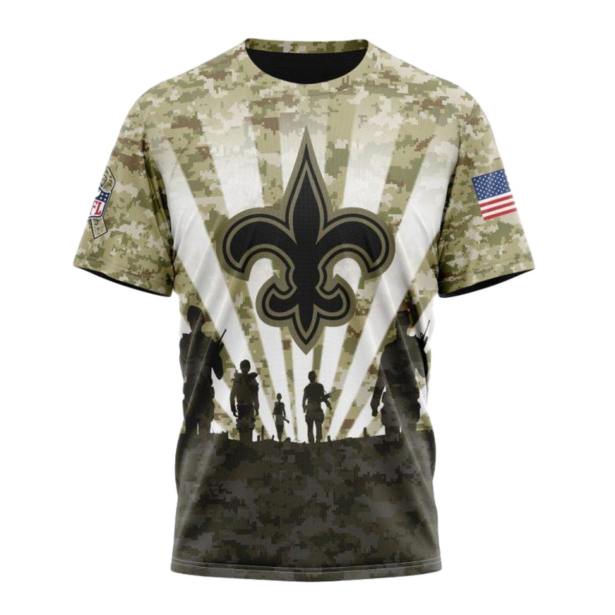 Show your pride and honor the spirit of the New Orleans Saints with our Personalized New Orleans Saints Veterans And Families AOP T-Shirt. Perfect for fans and families alike, this shirt is designed for casual outings, game days, or just hanging out with friends. Its unique all-over print sets it apart, making it a standout piece in any wardrobe.