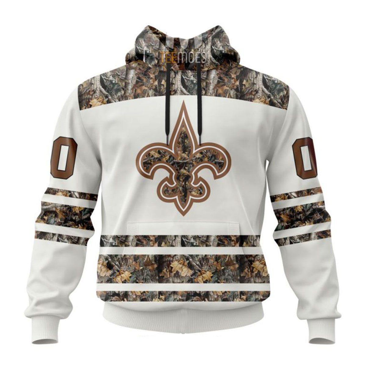 Embrace your passion for the game with our Personalized New Orleans Saints White Camo Hunting All-Over Hoodie. Perfect for die-hard fans and casual wearers alike, this hoodie is designed for those who want to showcase their team spirit while enjoying a comfortable fit. Whether you’re at a game, tailgating with friends, or just out and about, this unique hoodie combines style and functionality, making it a must-have for any sports enthusiast.