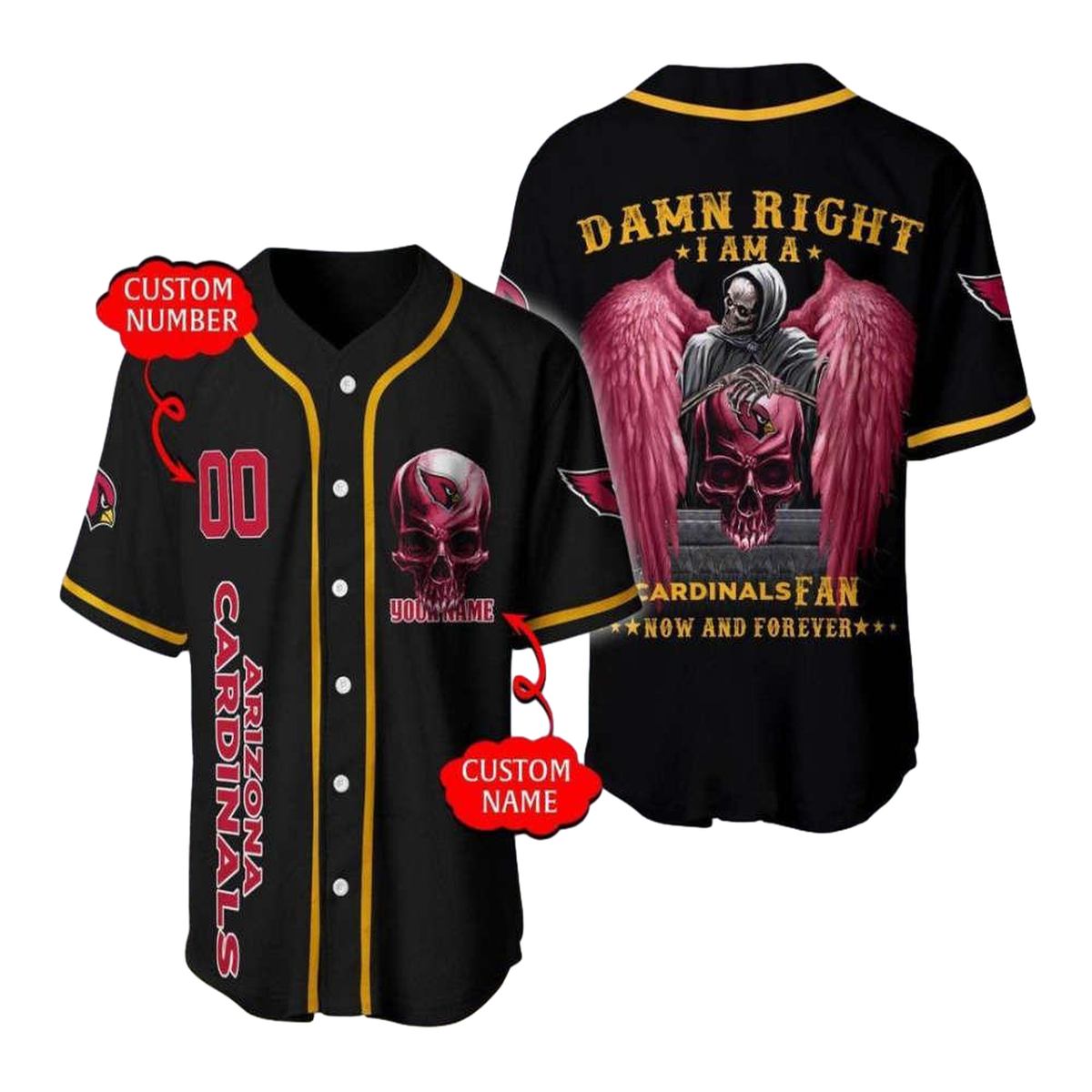 Show off your team spirit with the Personalized Arizona Cardinals DAMN RIGHT Angel Skull Black Baseball Jersey. This eye-catching jersey is perfect for game day, casual outings, or creating a unified look for your team. Whether you’re cheering from the stands or hitting the field, this stylish piece ensures you stand out with confidence.