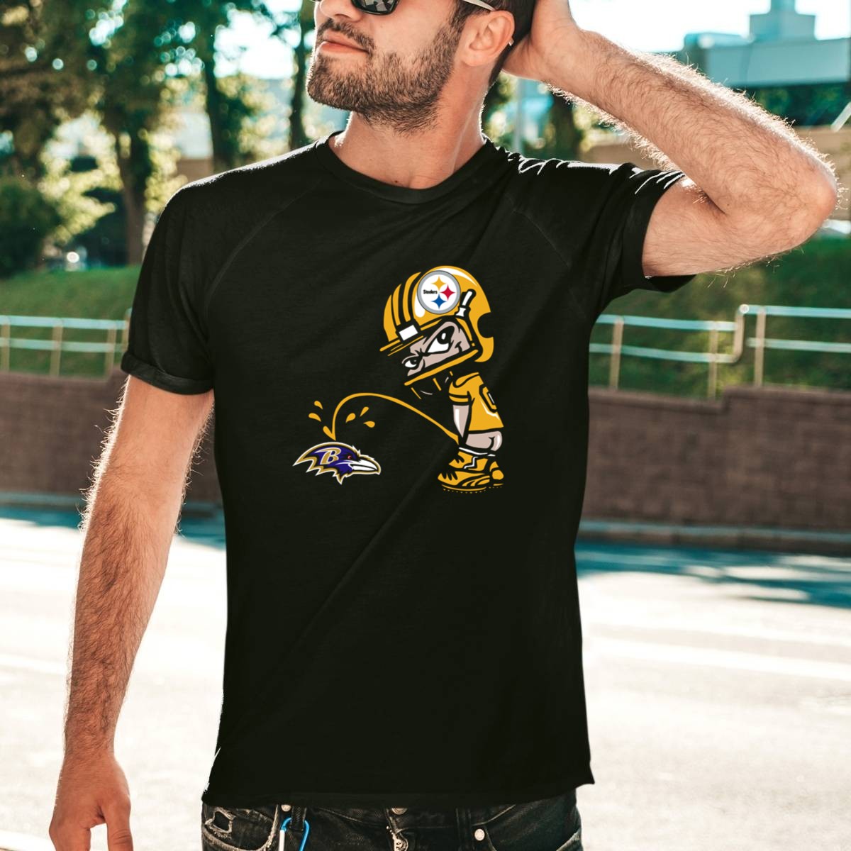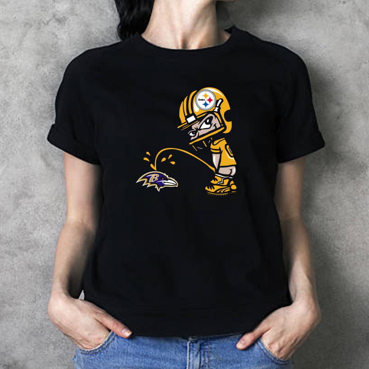 Show off your fierce loyalty and sense of humor with our Pittsburgh Steelers Fan and Baltimore Ravens Rivalry Cartoon T-Shirt! Perfect for die-hard football fans, this shirt brings a playful twist to the classic rivalry between these two iconic teams. Whether you’re at a game, hosting a themed event, or just enjoying a casual day out, this uniquely designed shirt will make you the center of attention and spark conversations among fellow fans. Proudly printed in the USA, it’s a must-have for anyone looking to celebrate their team spirit in style!