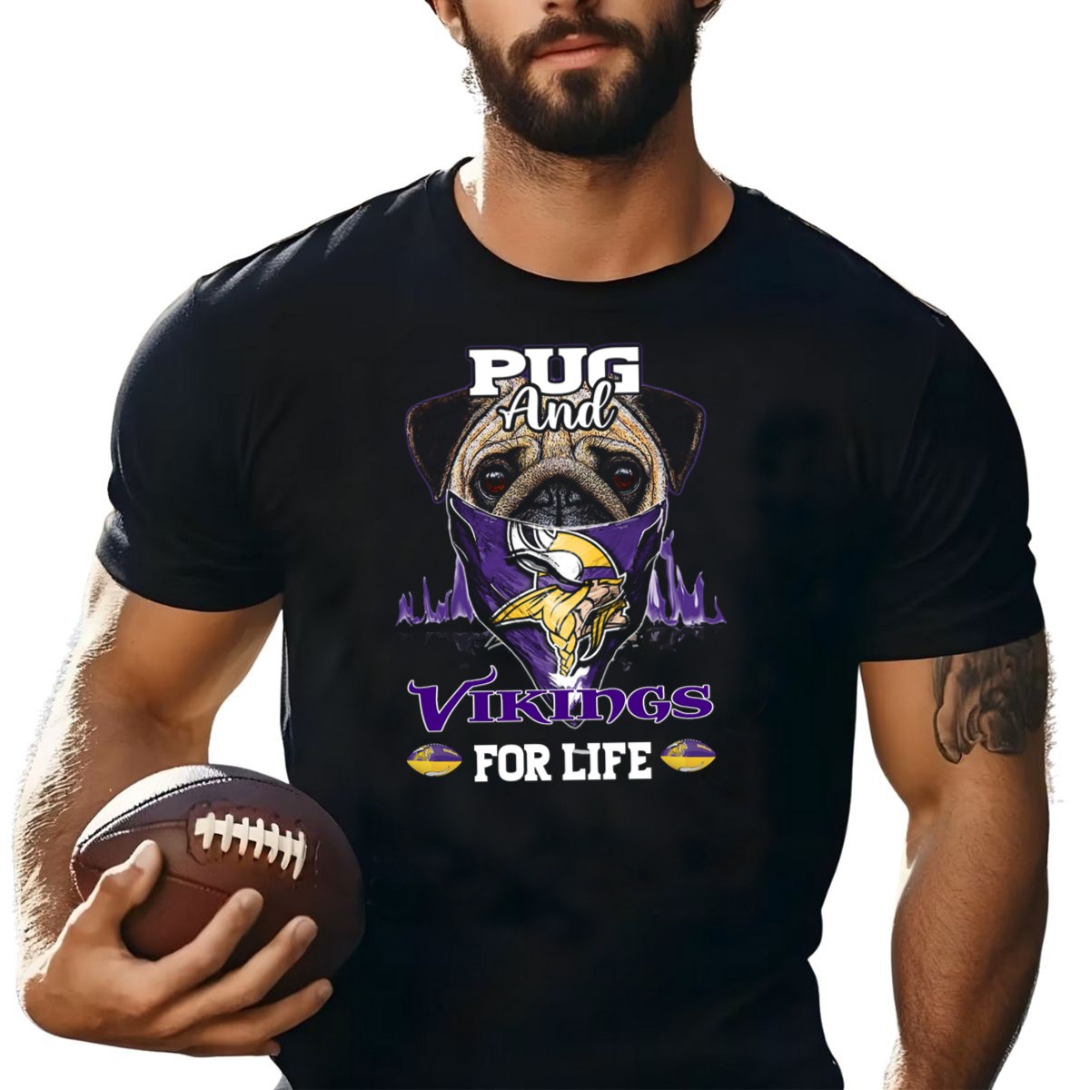 Celebrate your love for pugs and Vikings with this fan-made “Pug And Vikings For Life” T-shirt! Perfect for dog lovers and sports enthusiasts alike, this shirt combines humor and passion, making it an ideal choice for casual outings, themed events, or just lounging around. Proudly printed in the USA, this unique design showcases your personality and loyalty to your favorite furry friends and teams.