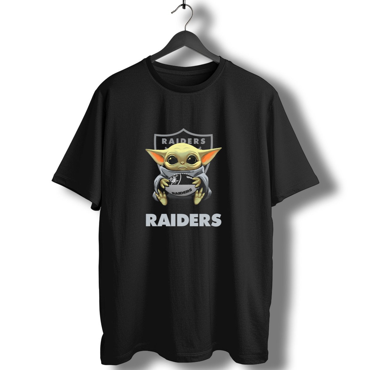 Show off your love for the Raiders and the adorable Baby Yoda with this unique graphic printed T-shirt! Perfect for fans of all ages, this shirt is ideal for casual outings, themed events, or just lounging around. Made in the USA, its fan-made design combines the playful charm of Baby Yoda with the bold spirit of Raiders fandom, making it a must-have for any loyal supporter.