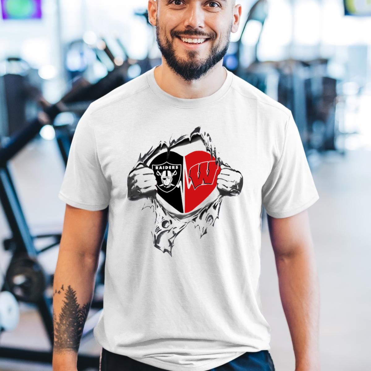 Show off your team spirit with the Raiders Badgers Heart Logo Fusion T-Shirt! Perfect for dedicated fans, this shirt combines comfort and style, making it an ideal choice for casual outings, themed events, or daily wear. With its unique fan-made design printed in the USA, you’ll stand out while showcasing your love for the Raiders and Badgers in a trendy way.