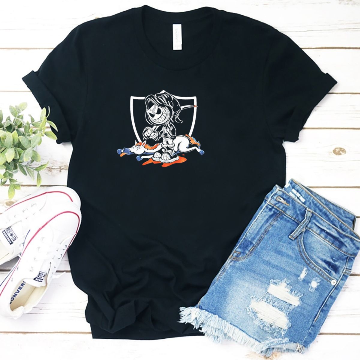 Show your unwavering loyalty to the Raiders with this unique fan-made T-shirt that captures the fierce rivalry with the Denver Broncos. Perfect for die-hard fans, this shirt is ideal for casual outings, game day celebrations, or themed events where you want to showcase your team spirit. With its comfortable fit and soft cotton material, you’ll not only look great but feel great while supporting your team!