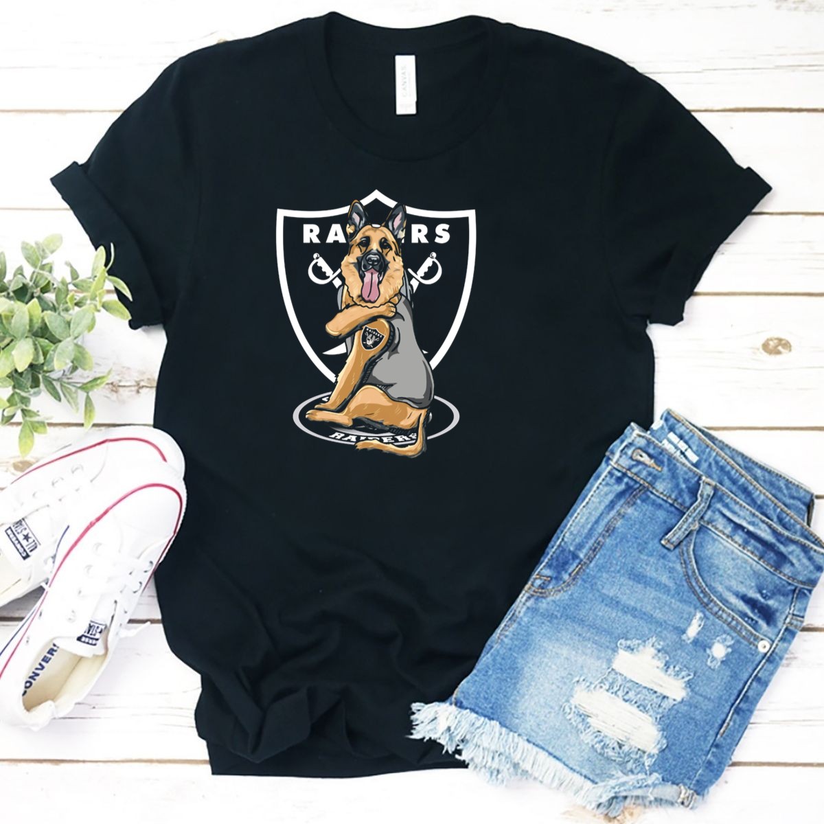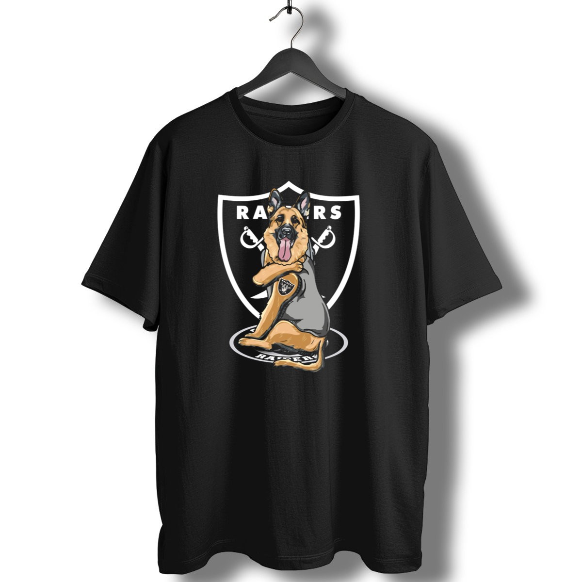 Show your love for German Shepherds with our Raiders German Shepherd Shield Badge T-Shirt! This fan-made design is perfect for proud dog owners and enthusiasts alike. Whether you’re heading to a casual outing, themed event, or simply enjoying daily wear, this T-shirt makes a bold statement while keeping you comfortable. Printed right here in the USA, it combines style and passion for one of the most beloved dog breeds.